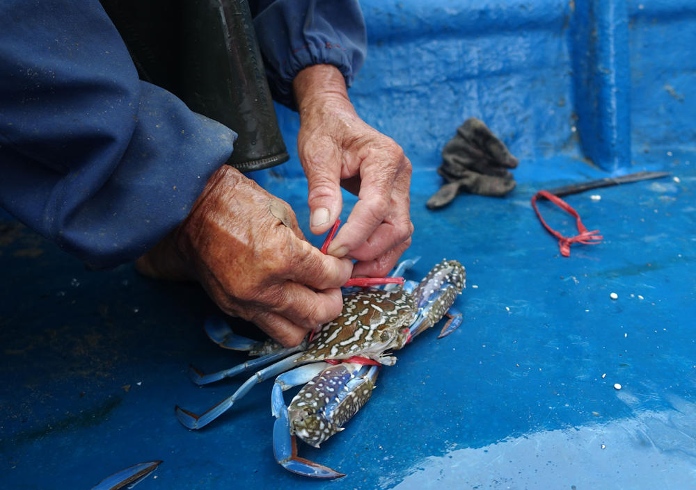 和渔民一起出海,吃最新鲜的螃蟹,是最快乐的事。