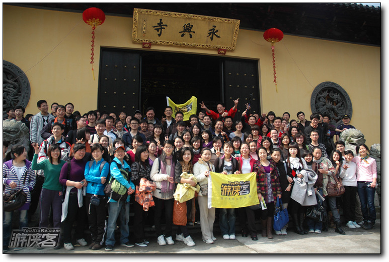 今天天气很不错,上午,是爬山组行动,大约150人左右,队伍到杨家牌楼永兴寺(有心事),拍了第一张集体照,庙门口不大,所以这里只有80%的人,还不包括迟到以后,在后面追赶的那些人!