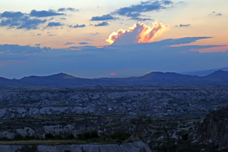 卡帕多奇亚我们入住于尔居普小镇边的一家酒店,天气较好,吃过晚餐我就出去拍风光和晚霞,小镇宁静美丽,在晚霞映照下,更是熠熠生辉。余兴未尽,又登上对面小山,拍摄了奇特地貌中的壮丽晚霞和落日。