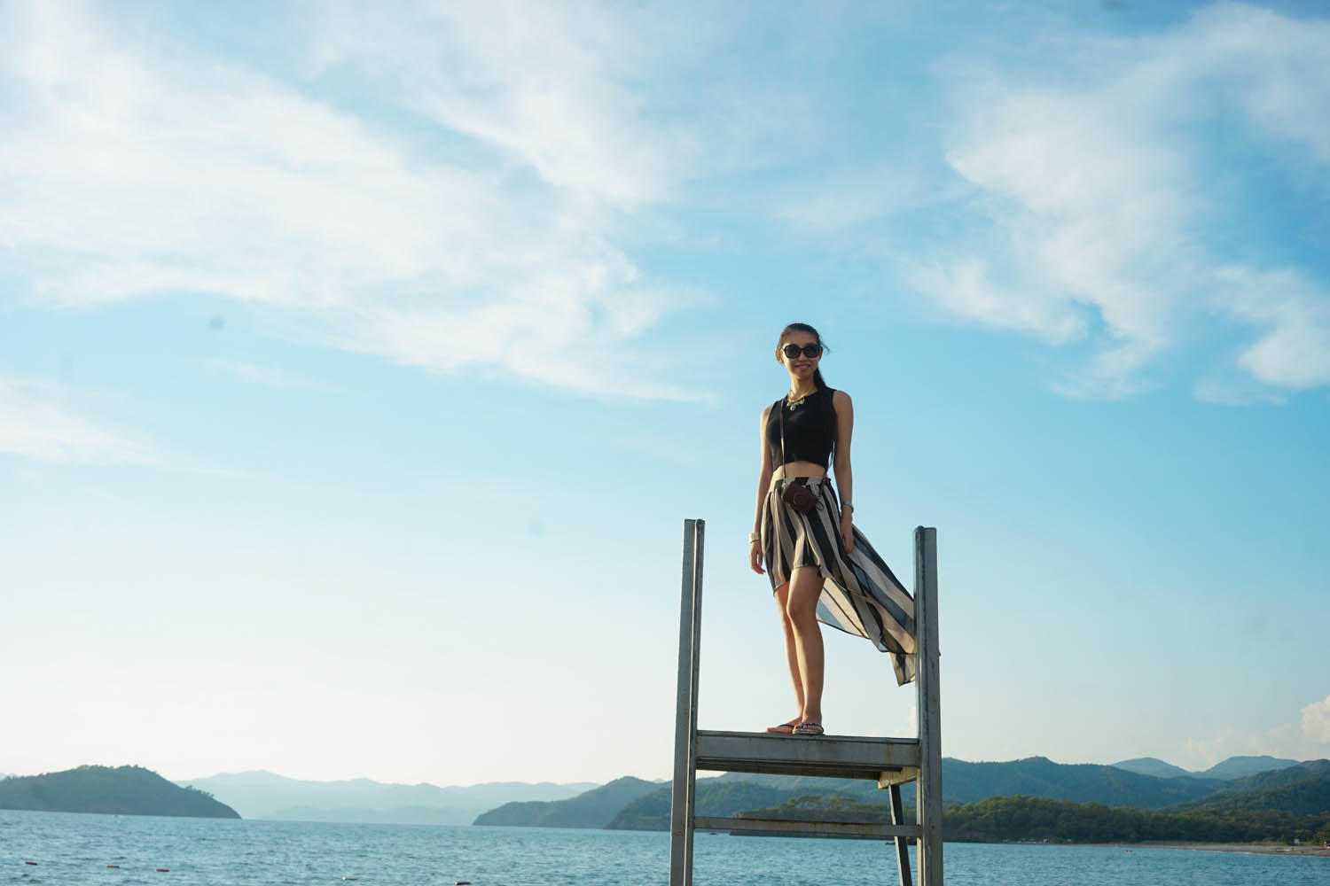 我也忍不住大海的诱惑,还没来得及换泳衣,就直接跳下去了。
