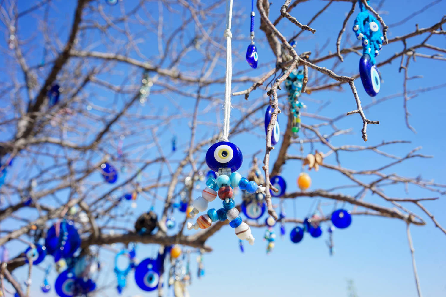 于是他们随时带着模仿恶魔之眼的蓝色眼状护身符,用以吸引邪恶之神的注意,逃避厄运。