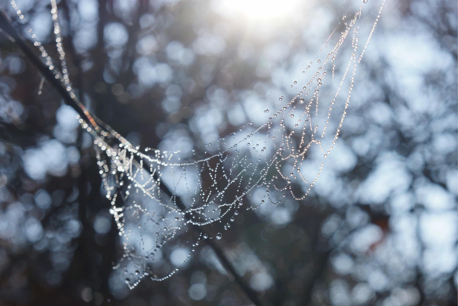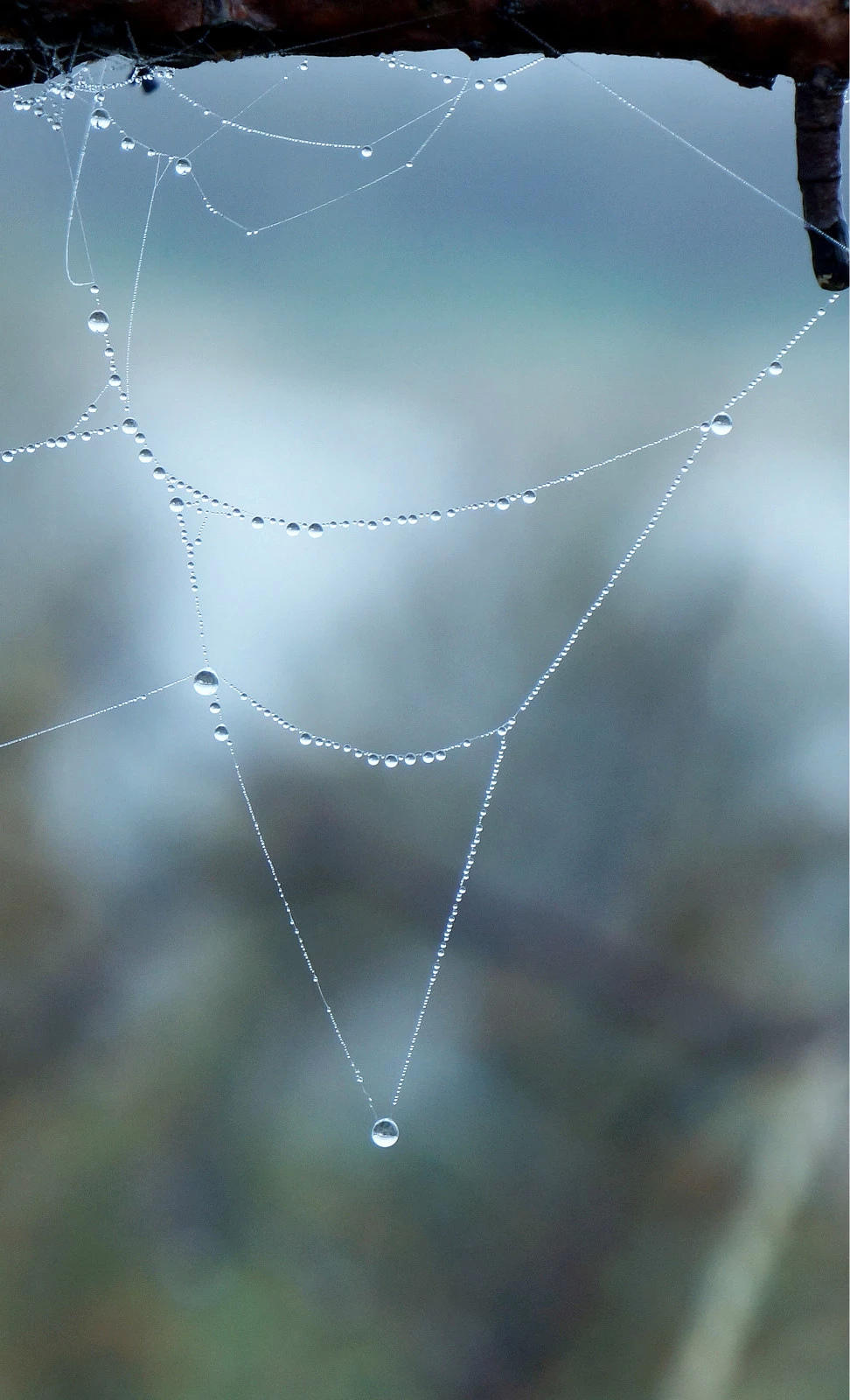 蛛网,收集了一晚的露水,化作水晶的链子,向我炫耀着她的美,嗨,给我一串,好不好。。。