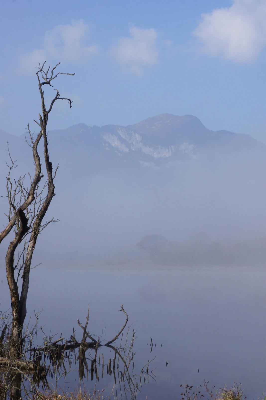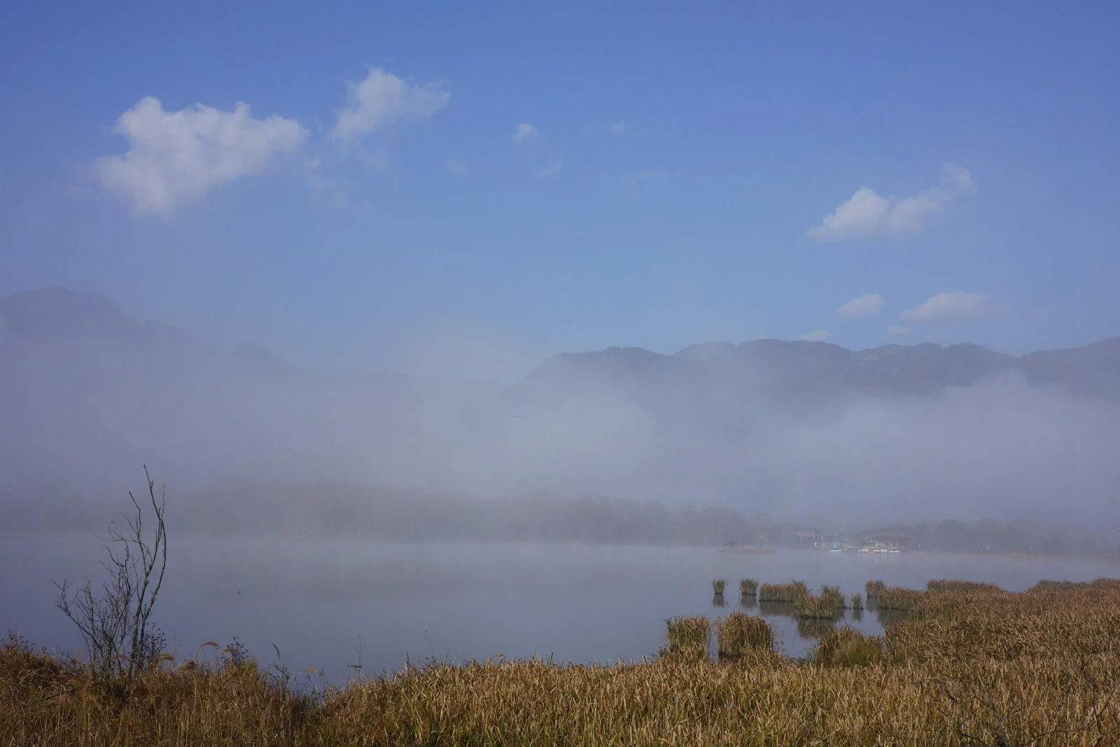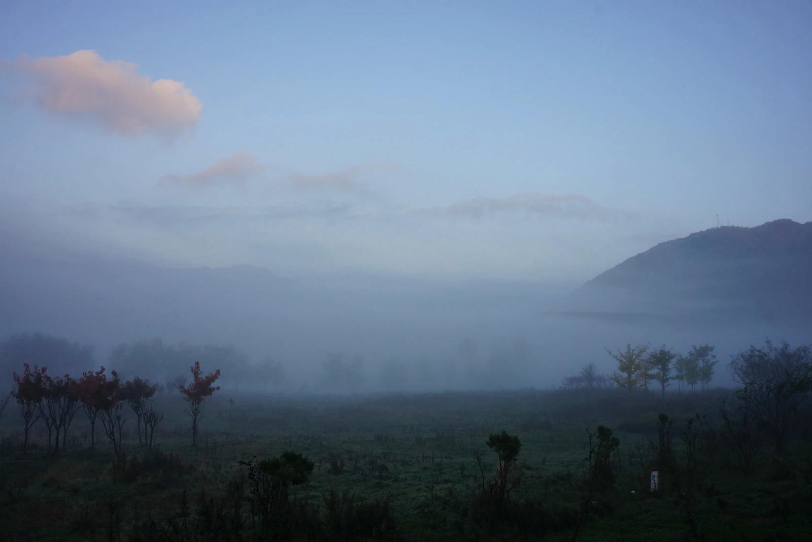 大九湖的晨雾,铺天盖地地来,浓得散不开、挥不去,看不见远山、看不清近水,只觉身在弥漫的水气里浸润着,似要融入了一般。。。。。