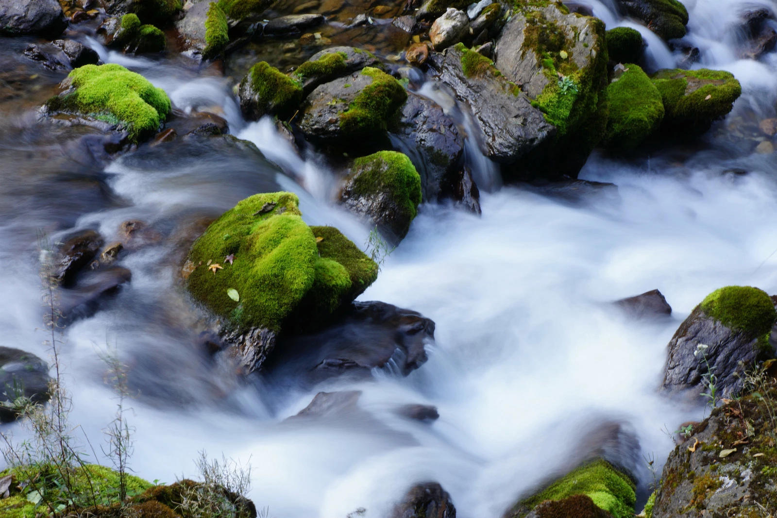 大龙潭,流涧声声里,落叶与青苔最忠诚的聆听者,也是画面里最美的点缀。
