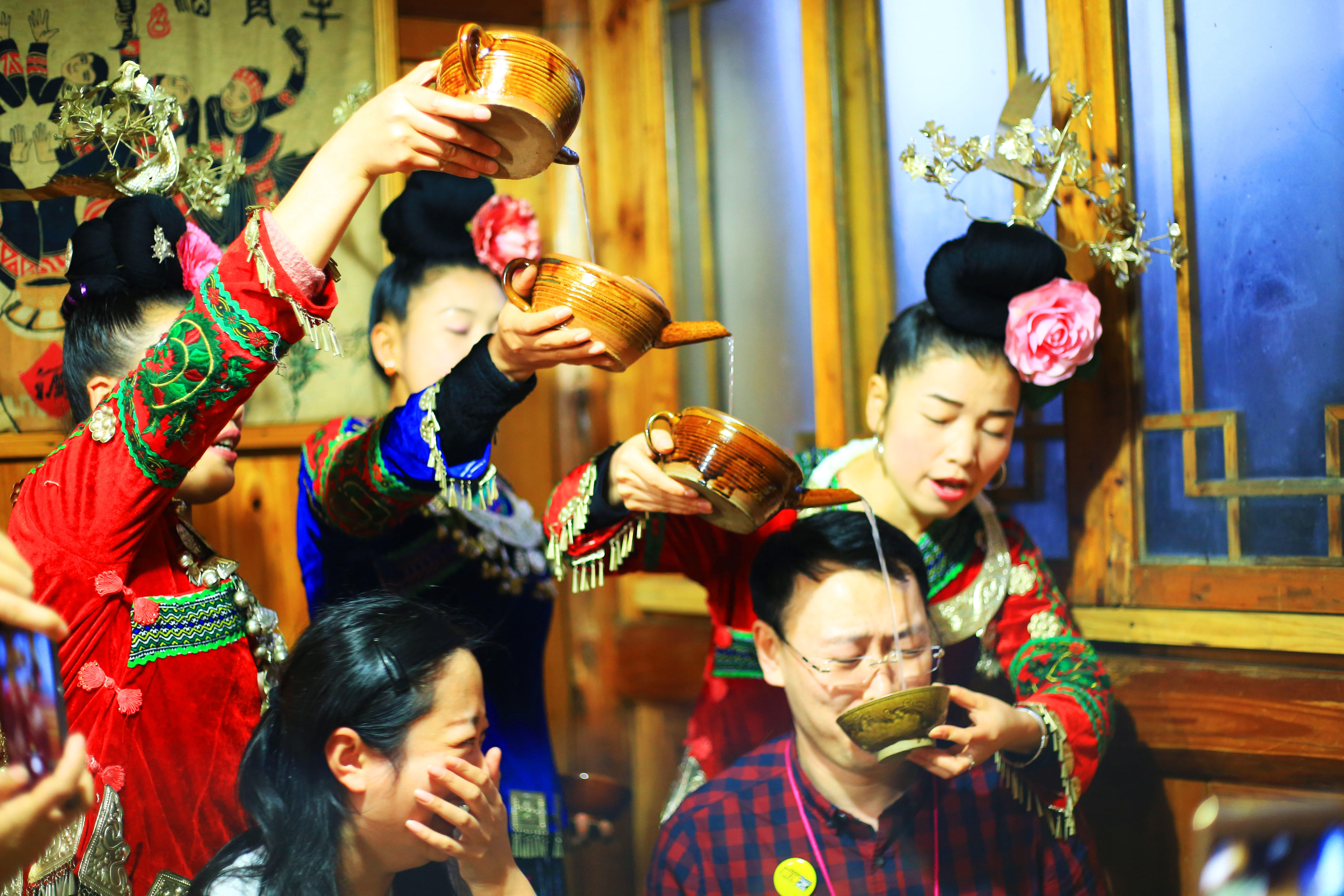 在这里我们体验了地道的苗家十二道拦门酒以及长裙苗歌舞表演