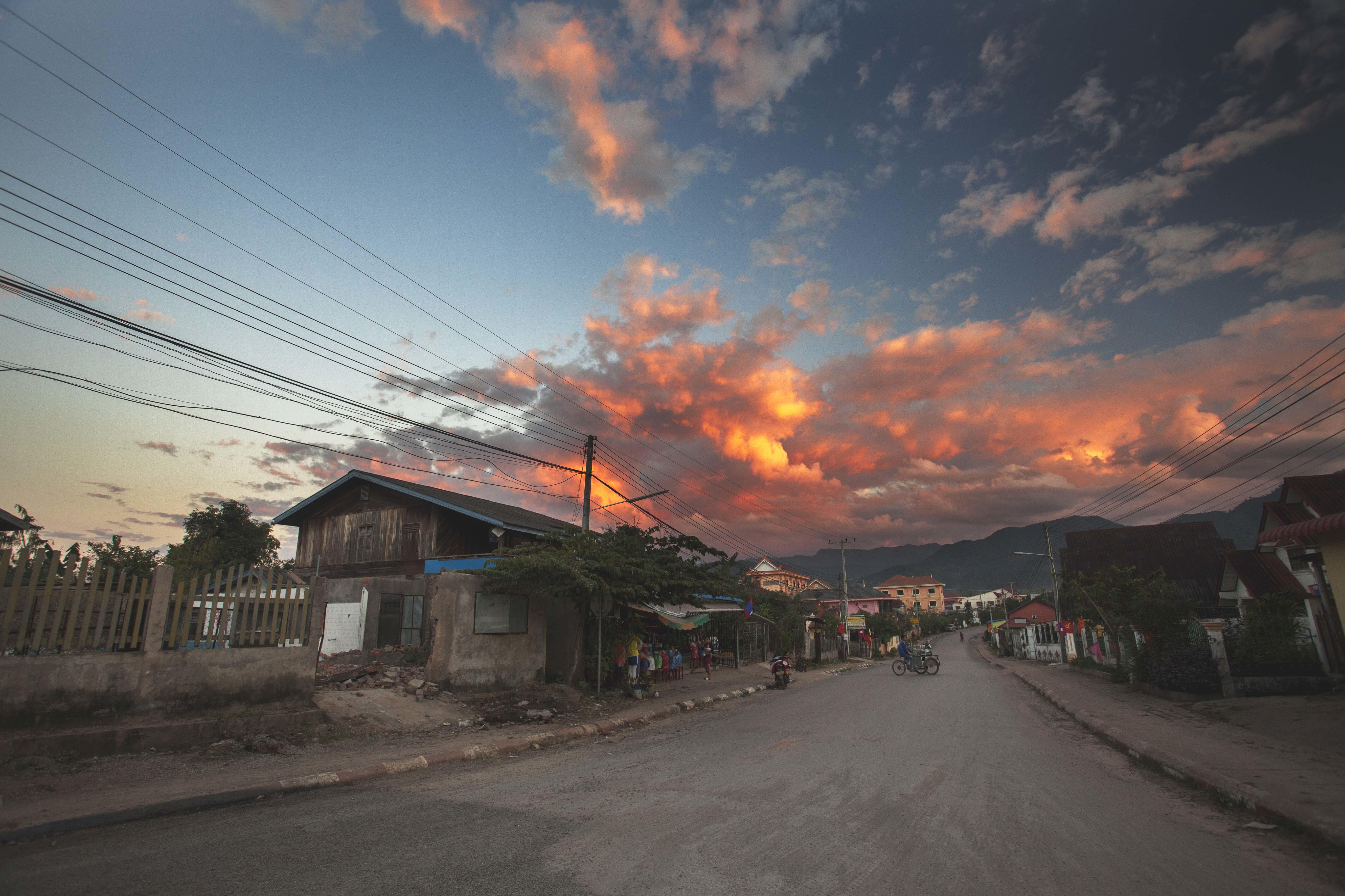 沿途会遇到当地人临街售卖的一些水果、零食,物美价廉。随即到达第一站:乌多姆赛的省会孟赛,与其说这是一个省会,规模倒更像国内的一些乡镇,没有高楼林立,大多两三层的小洋楼也格外惬意,从酒店的窗户就可以看到大半个城市。菜市场很生活化,一些不知名的肉类和蔬菜也会在这里售卖,一些学龄前后的小孩子就开始担当起家庭的重任;屋子边上的一小段土路就是他们的球场。傍晚的时候,夕阳染红了半个天。