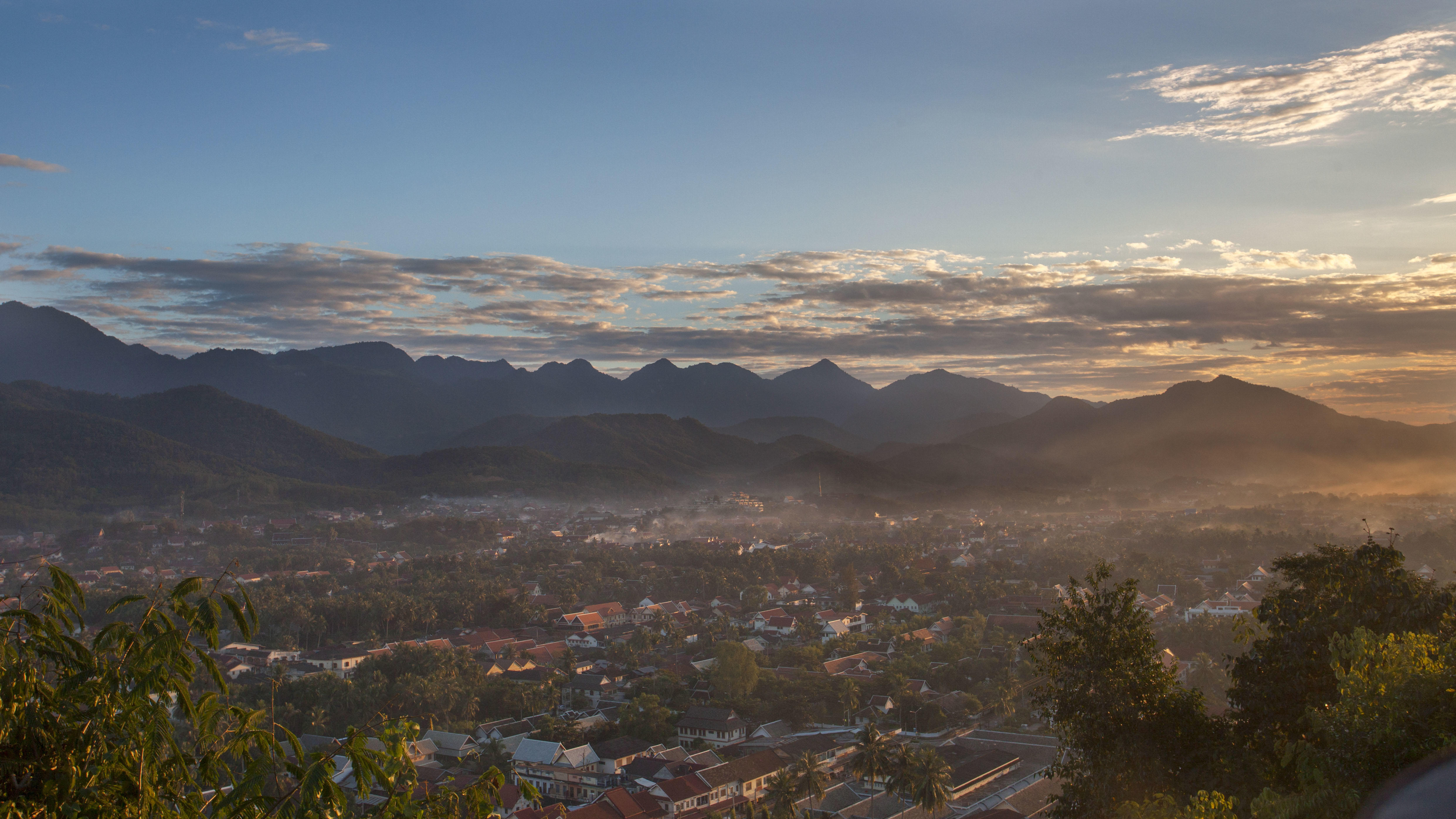 夜幕降临之前,我们登上三百多级台阶,来到普西山山头,感受着这座早已登上国际舞台的小资城市在湄公河畔慢慢睡去。因为老挝曾是法国的殖民地,很多法国当时建造的欧式建筑搭配上东南亚的热带植物别致又不失协调,远山脚下的炊烟让这座迷人的城市更加梦幻;璀璨的云朵尽显惊艳,转过身,月圆了。