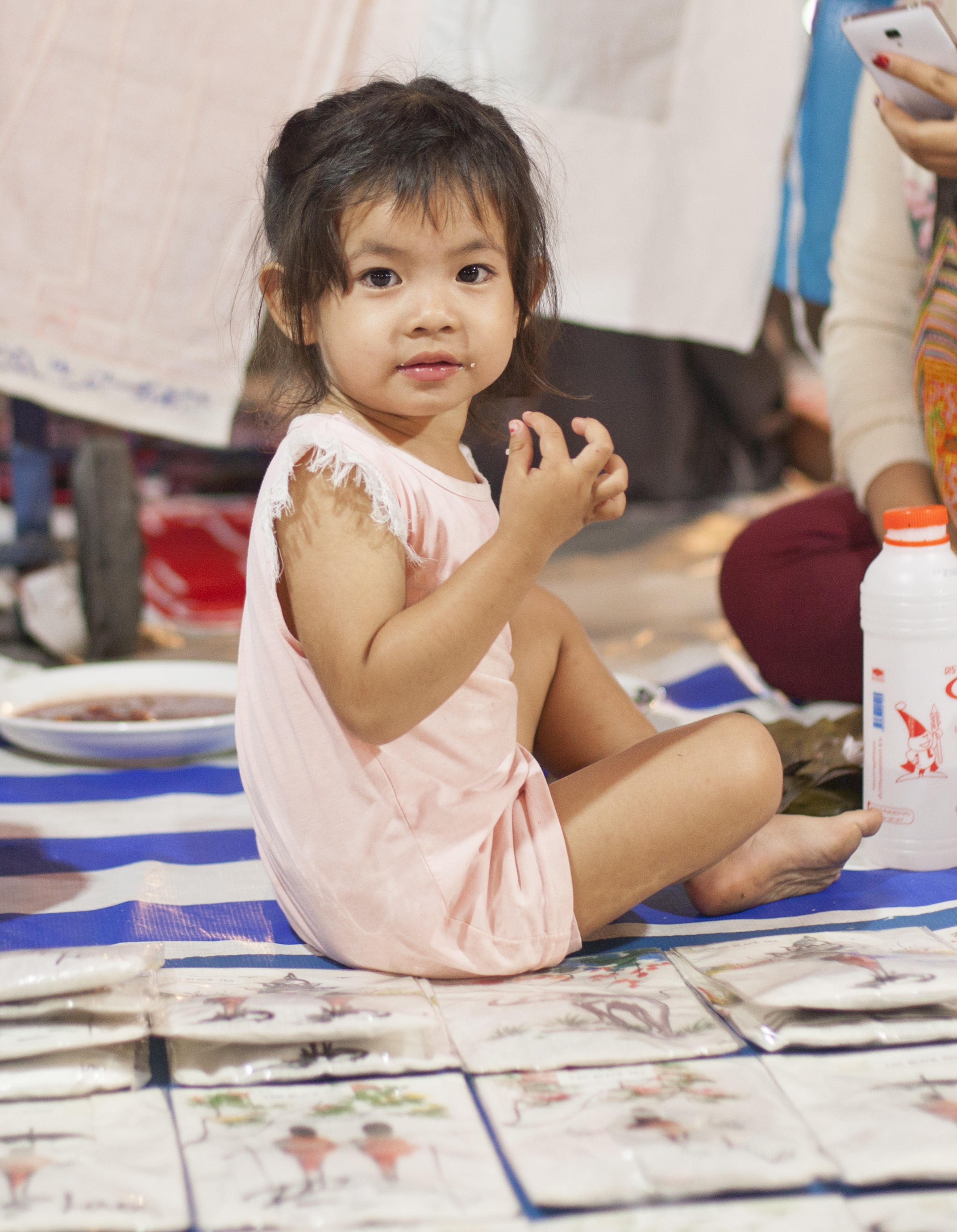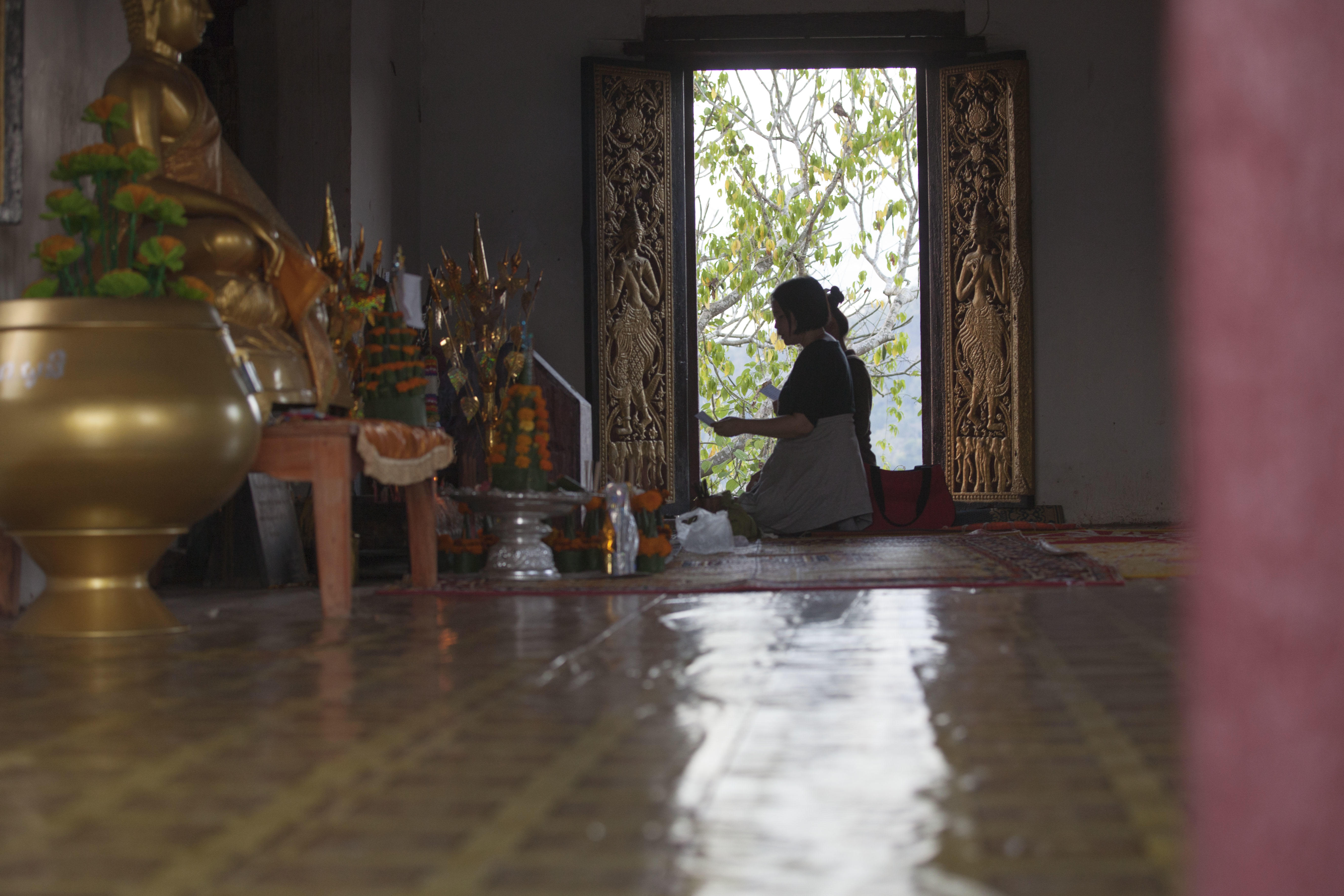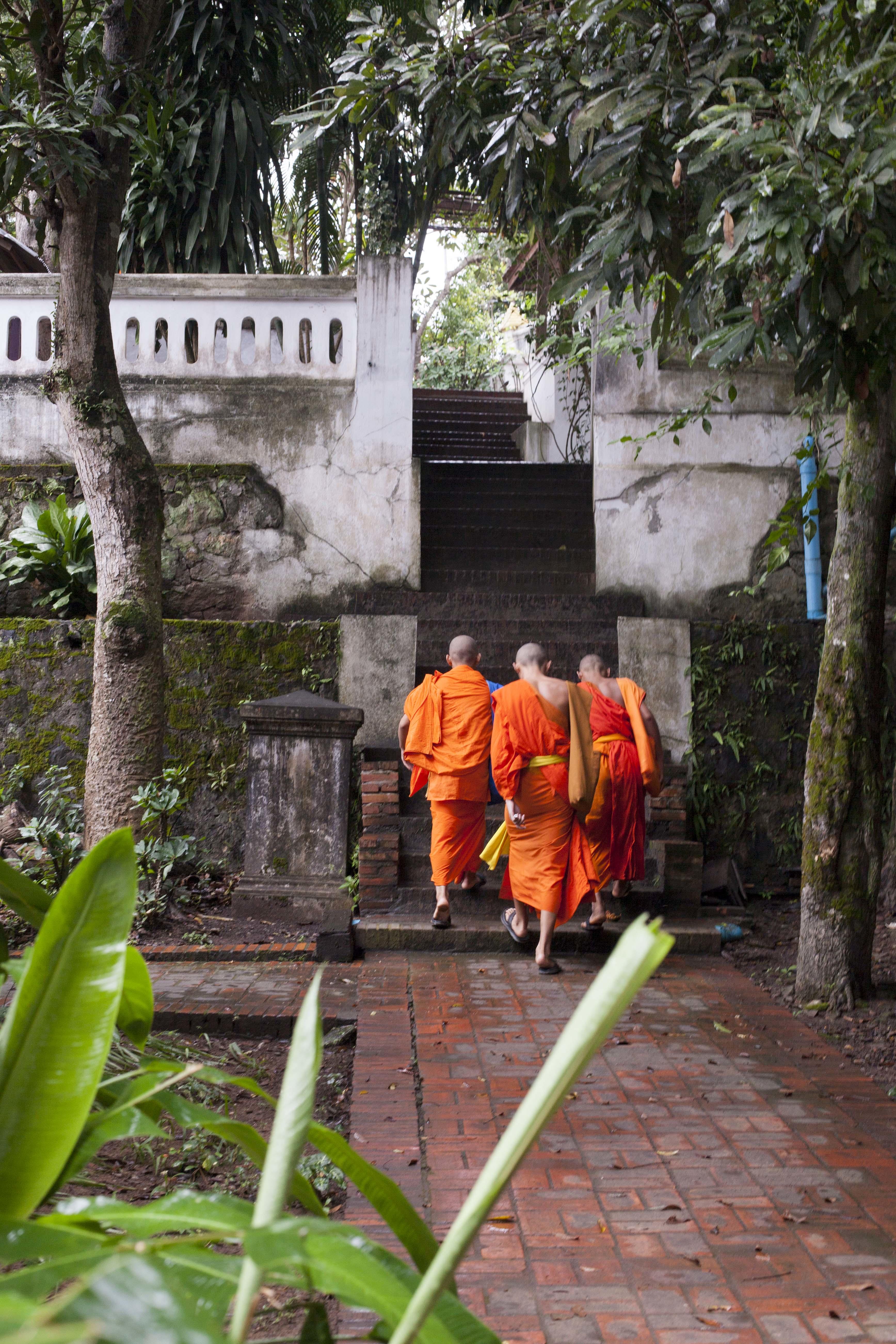 今天还没等到天亮大家就早早的出发了,我们要赶在沙弥队伍开始布施前就走到他们要行走的地方,每天清晨,沙弥都会成群结队的绕着整个城市走一大圈,祈福诵经的同时拿着篮子在沿途“化缘”,虔诚的布施也是一种积德行善,这也是整个琅勃拉邦都安静祥和的原因之一吧。