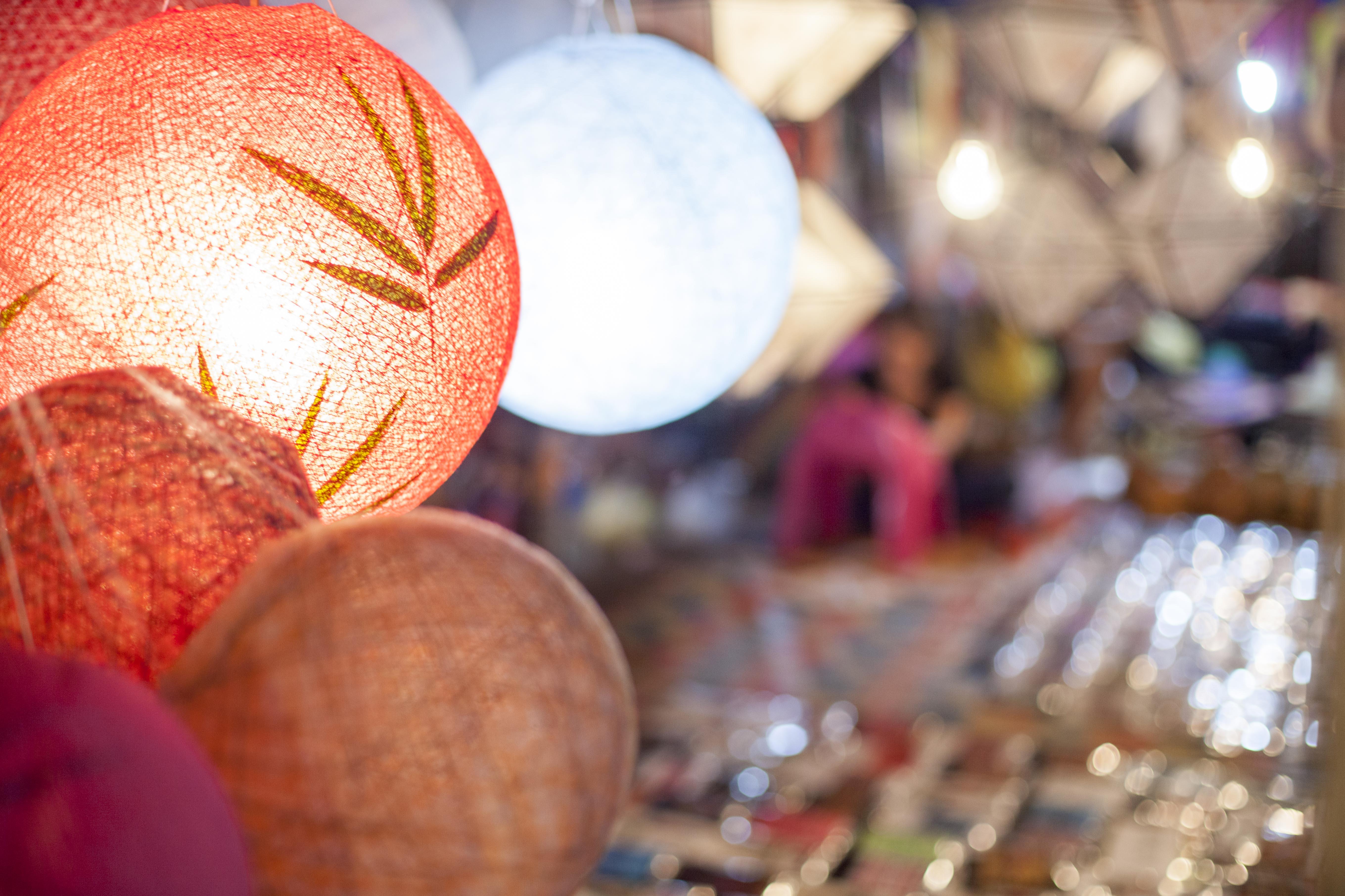 此时的山脚下,新的一天即将开始上演,小摊贩们纷纷支起红蓝顶的临时摊位,搭配上大皇宫白色的围墙,犹如老挝白日红蓝旗。逛吃逛吃模式开启,吃饱了才好逛,小吃街已开始人头攒动,来自世界各地的背包客默契的同时朝这里涌来,自助的大排档琳琅满目,物美价廉。当然大快朵颐的同时不能缺少一瓶正宗的老挝黑啤,略苦的回味里带着麦香;鲜榨的热带果汁鲜美又健康。宛若长龙的夜市已门庭若市,售卖的多是些很有特色的民族手工艺品,一些小贩会讲些简单的英语,不要忘了国际通用的阿拉伯数字,直接在计算器上按下自己的心理价位对方如果接受就成交了,实际价位一般在开价的一半,买高兴记得要跟老板说声
