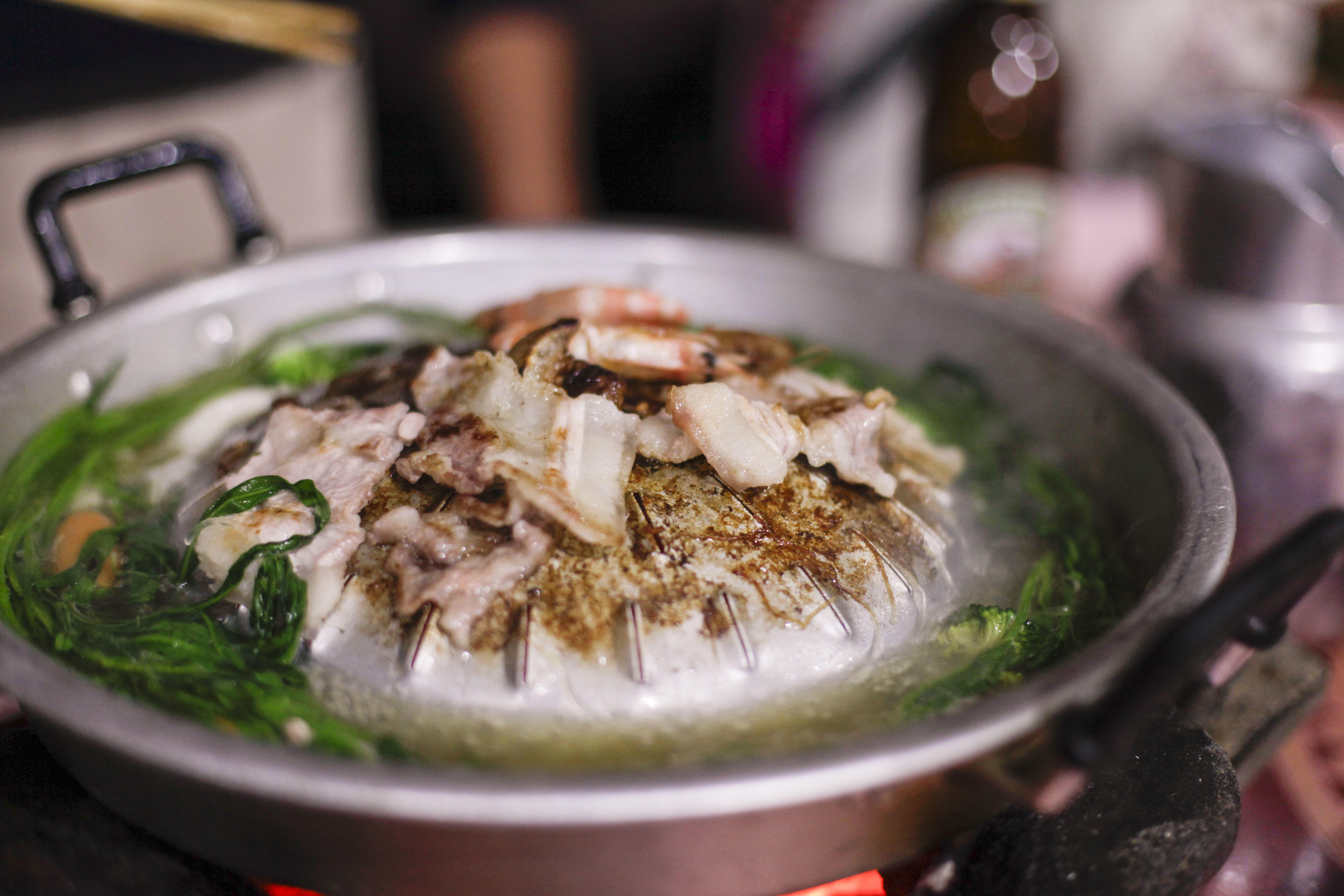 狂欢之后自然不能没有豪吃畅饮,湄公河边上还有等待着的老挝自助火锅,一锅两吃,烤、煮分离,无论是餐桌上丰盛的食材还是奇特的调味品都引诱着味蕾。