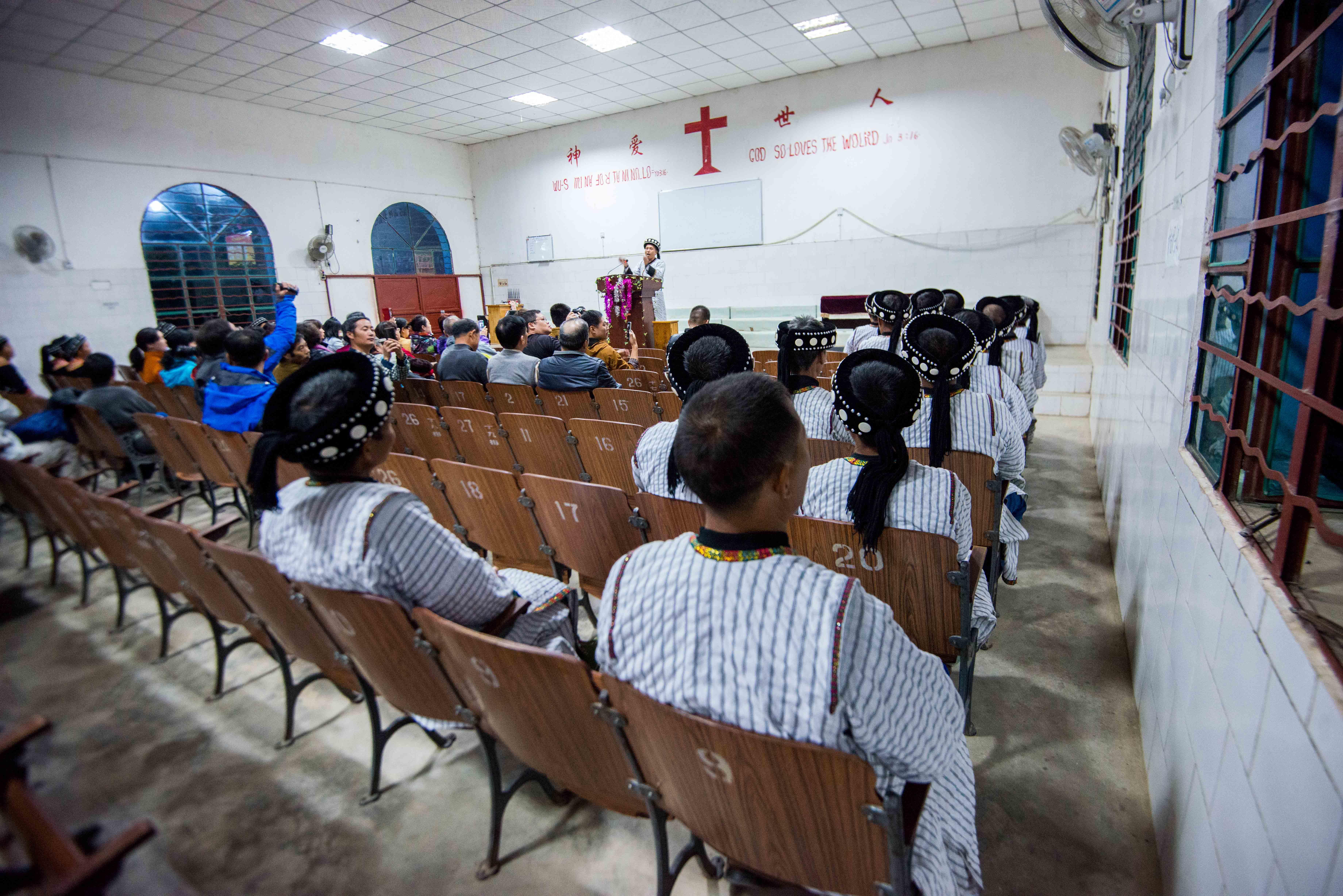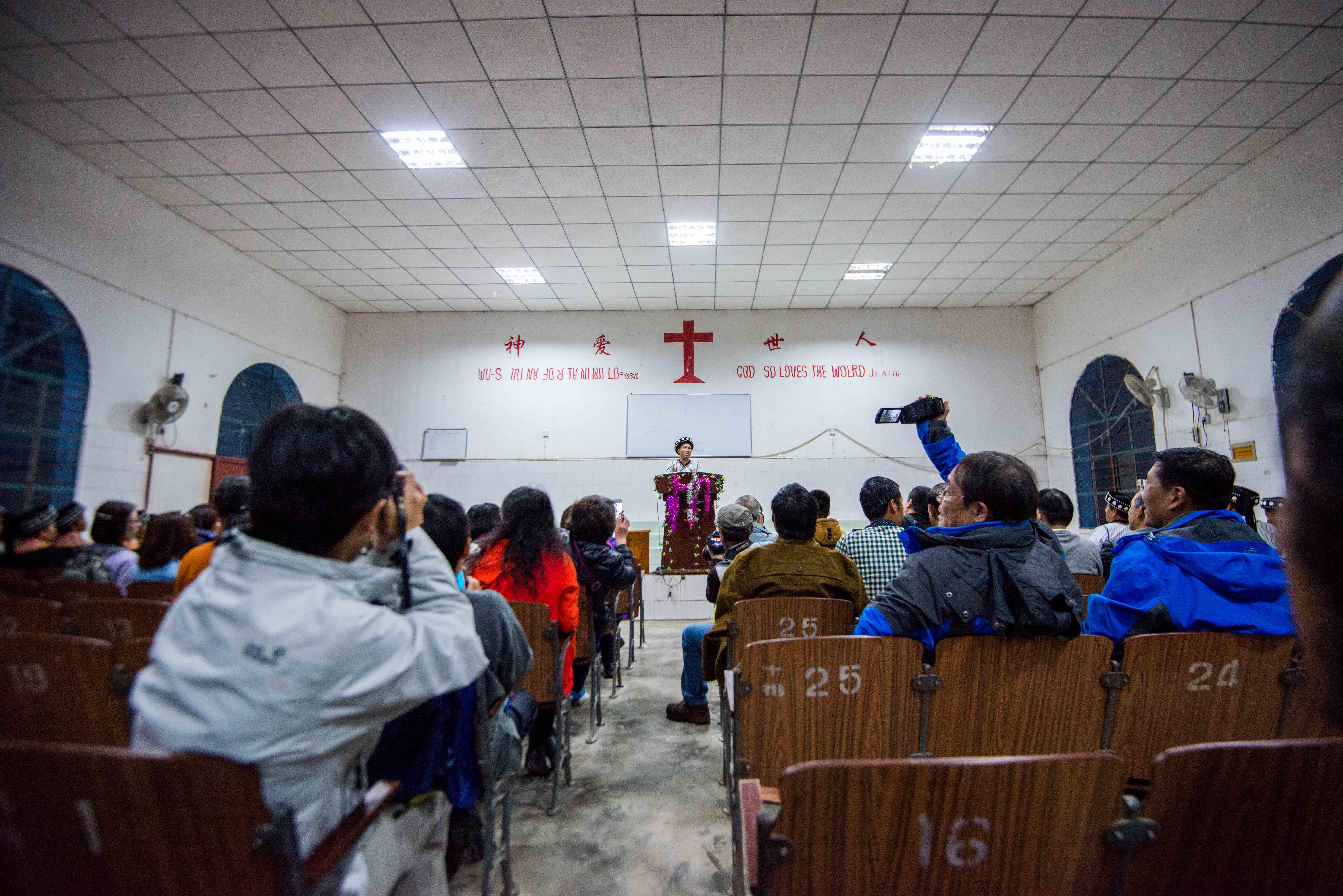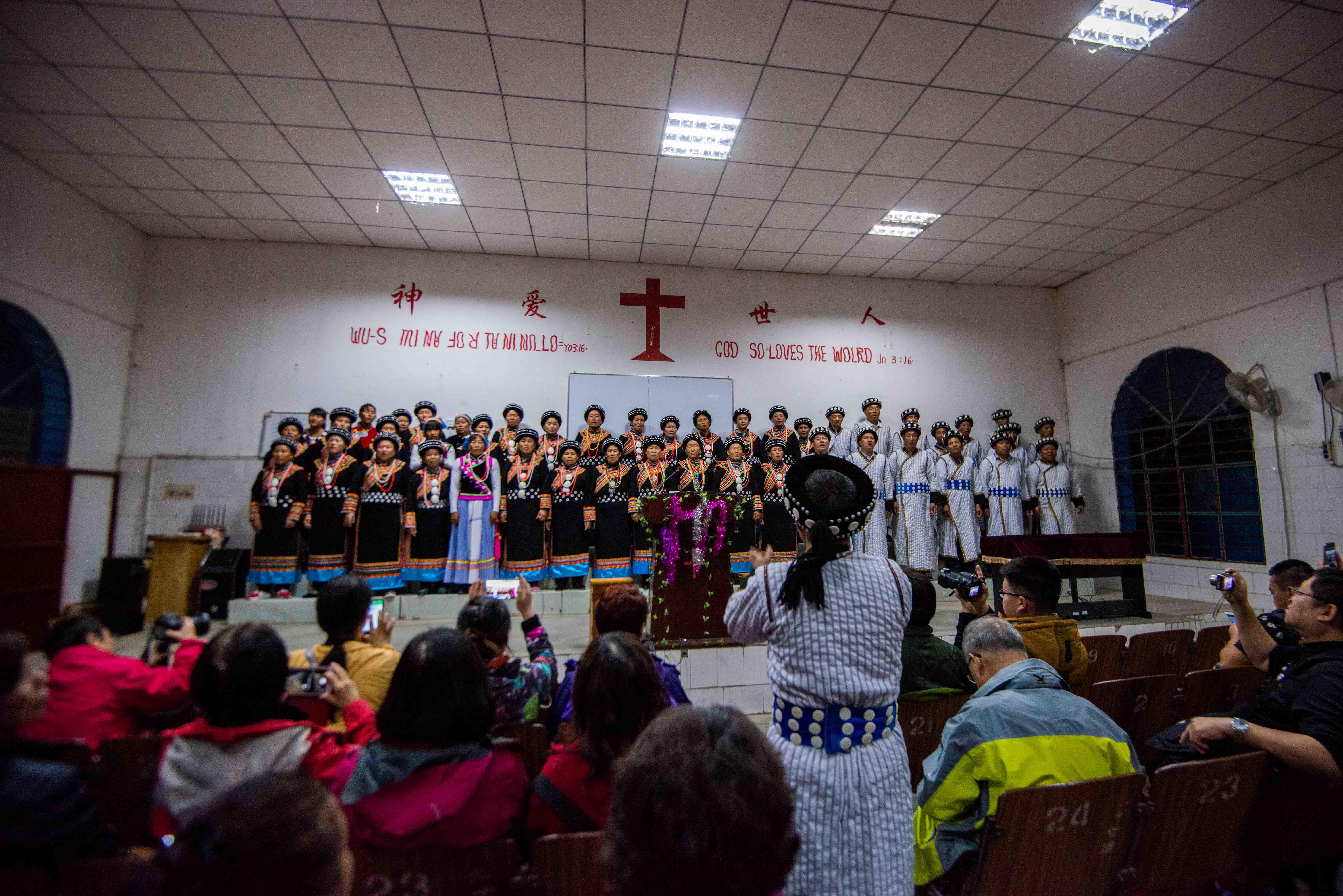 享受过温泉后,吃完晚饭,我们就前往百花岭教堂,去聆听被称为傈僳族天籁之音的“无伴奏多声部合唱”。在教堂里,教众们身穿傈僳族本族服饰,