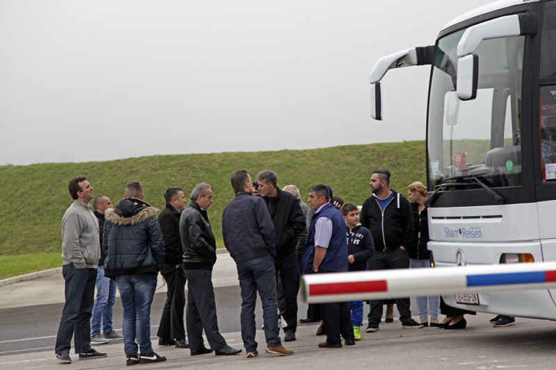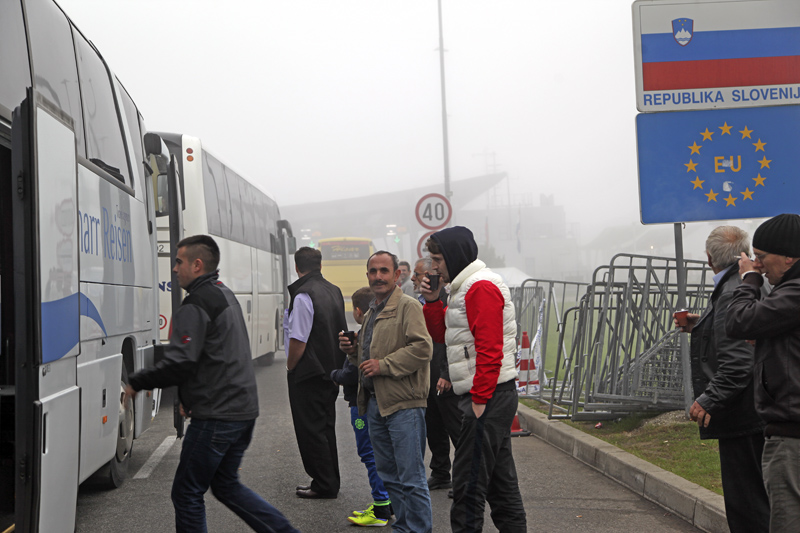 早上离开克罗地亚首都萨格勒布,驱车前往中欧小国斯洛文尼亚。一路大雾弥漫,斯洛文尼亚边境排着难民大巴车队,入境一时阻塞。趁停车空隙,我们下去拍摄过境难民画面。他们因战乱被迫背井离乡,生活前景渺茫。愿他们家乡战乱早日结束,重返幸福家园。