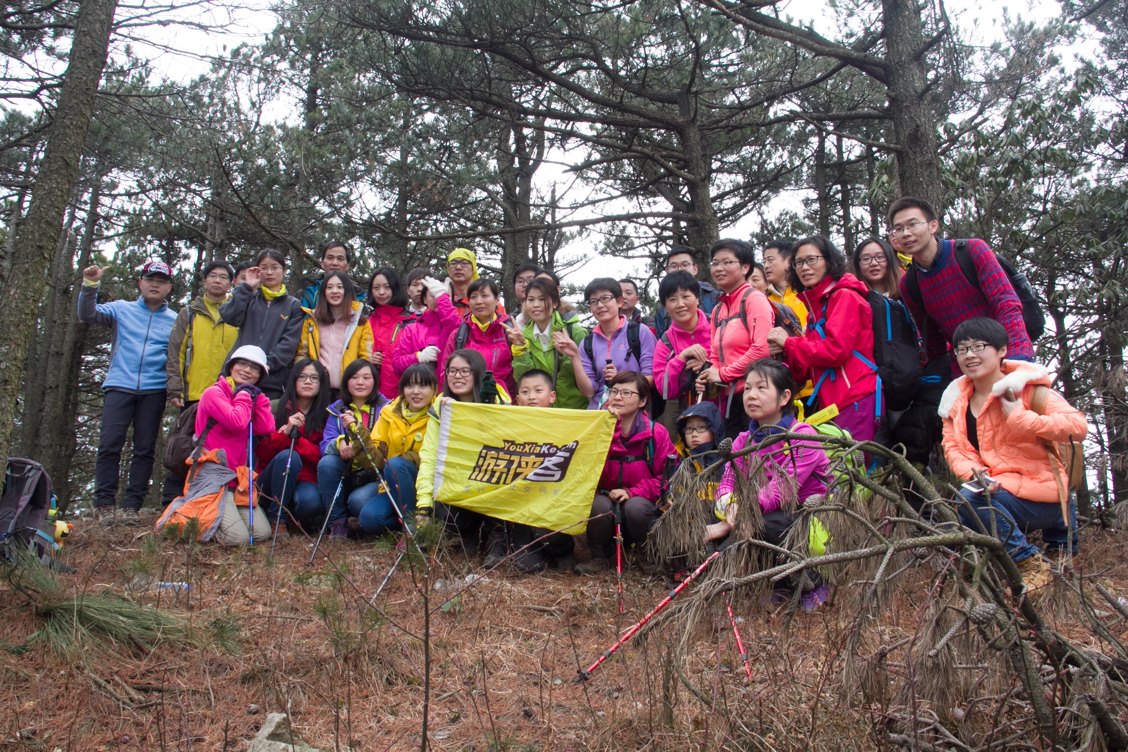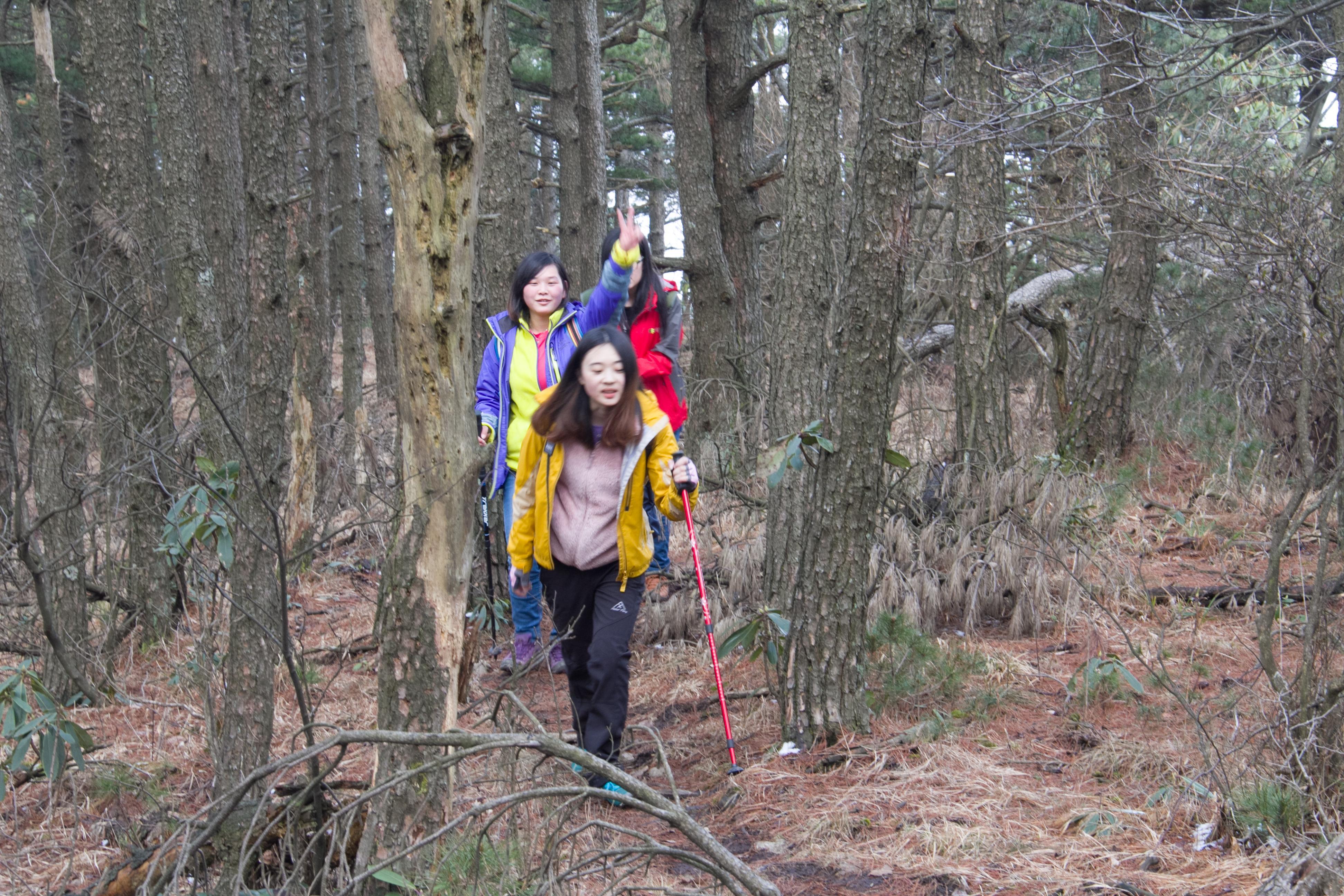 就这样,35名男女老少游侠,在大海和羚羊的带领下,穿梭在密林深处,游动在灌木之中,一点一点地蚕食着海拔,600米,800米,1000米,1200米,1400米,1558米,成功登顶童公尖。一路上渐渐浮现的星星点雪,时不时让我们大呼欢喜,留下未见漫山冰雪的遗憾,待来时再续。