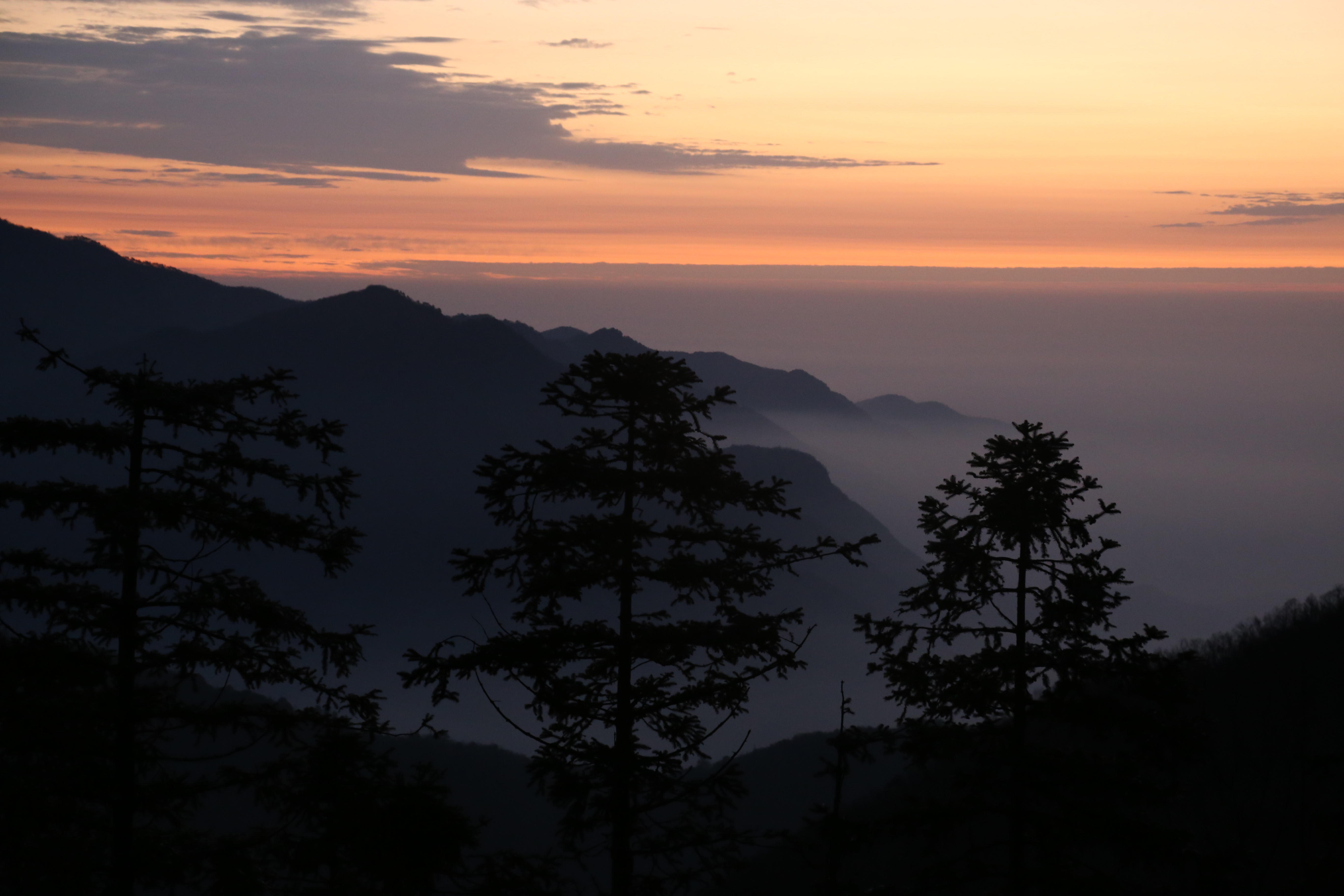 一番攀爬,我们总算清晨来到了第一个尖顶,仙人顶!此尖海拔