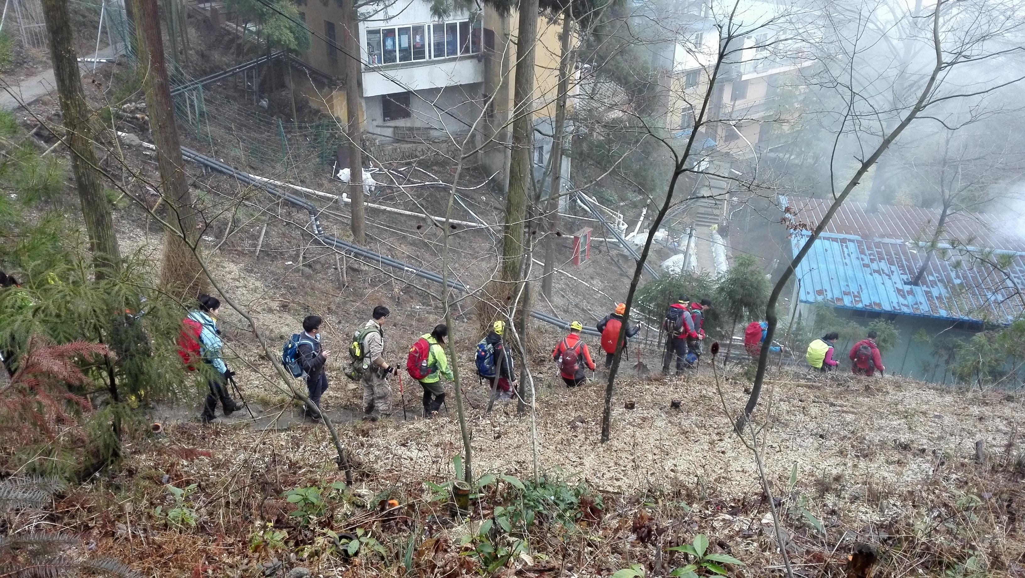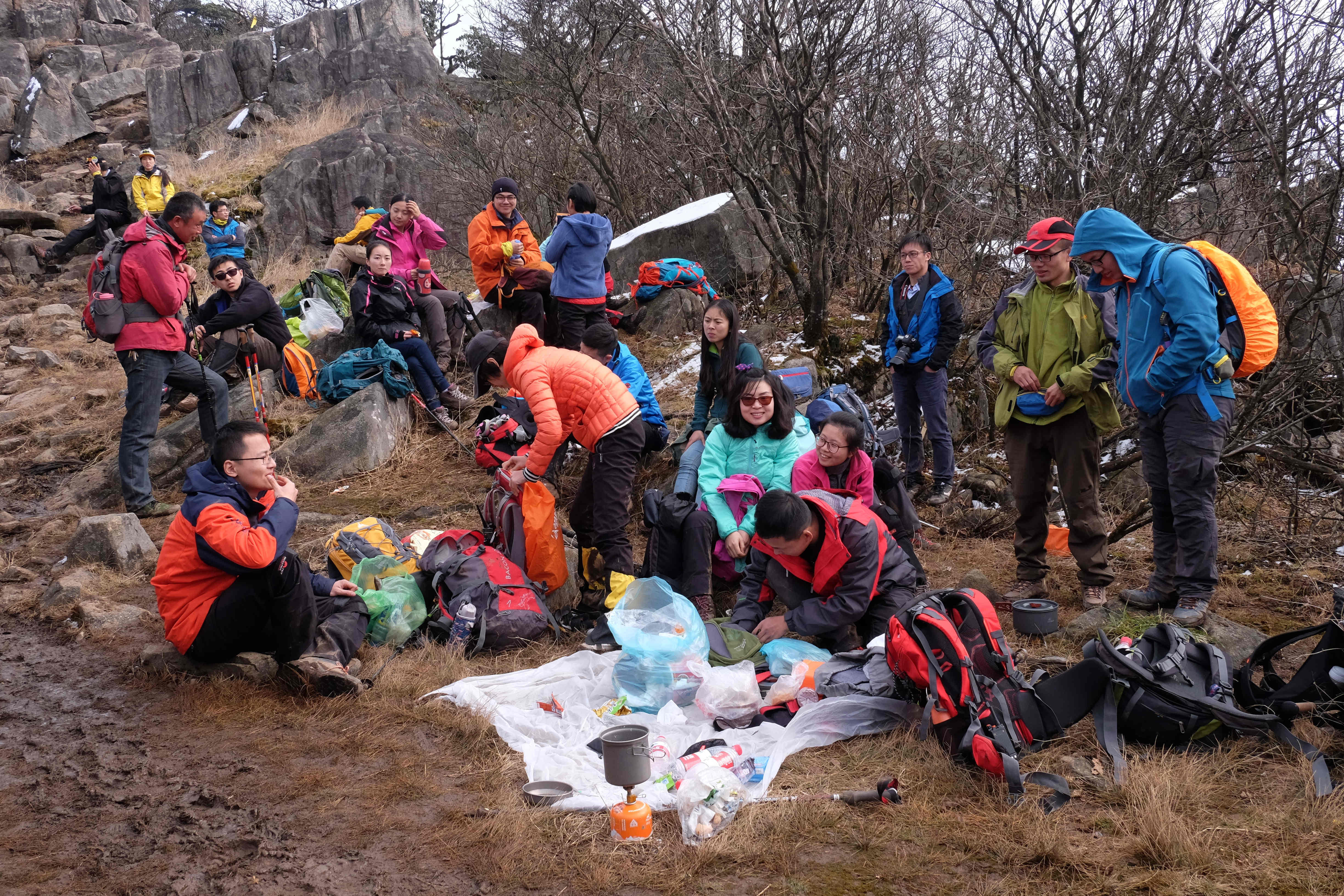 走完这个大下坡,是一片狭小的林间,我们一路向上爬,在这里我们的队伍拉开分成了三个梯队,这里比较耗费体力,所以照片都很难跟上,难得的照片,大伙有其他的请都积极上传啊~