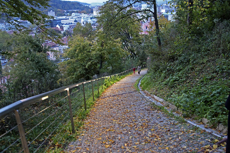 城堡塔最高处,极目远眺,整个卢布尔雅那尽收眼底,一片高低起伏、错落有致的红屋顶,绿色园顶和尖顶大教堂点缀其中,山上浓绿的植被与街道的绿树遥相呼应,风景这边独好。