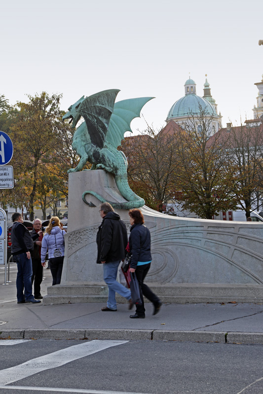 建于1901年的龙桥,是卢布尔雅那的标志性建筑,这座百年古拙的石桥,两端桥头各有两座长着翅膀的翼龙的青铜塑象,怒目圆瞪张牙舞爪,威风十足,成了