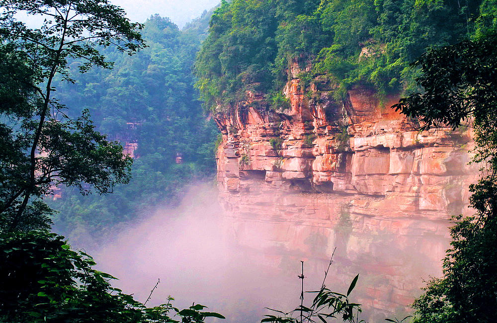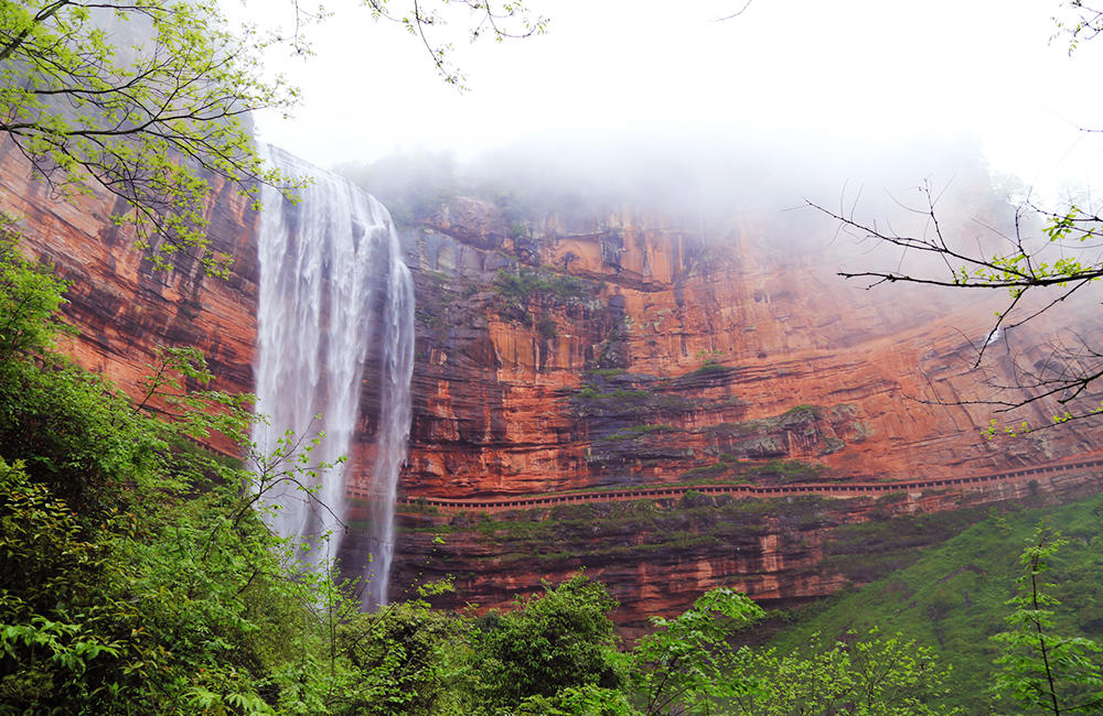 被号称瀑布之乡,大大小小的瀑布共有100多处,其中最大的望乡台瀑布高152米,宽40米,是中国第一高瀑(比贵州的黄果树瀑布还要高出一倍)。如果赶上晴天,还可以看到美丽的彩虹!更重要的是,瀑布两遍的山崖组合在一起,远远地看像一颗赤红的爱心,寓意之美,爱侣皆知。