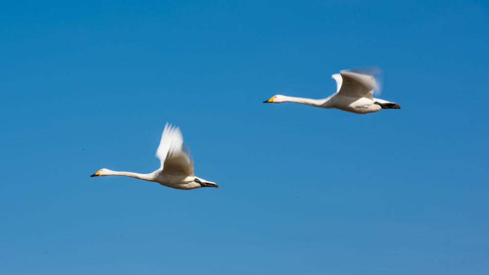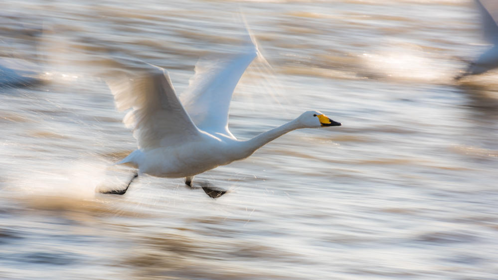 D3 早起在【车祝沟】拍摄日出中烟墩角天鹅的各种飞行姿态,傍晚再次前往【天鹅湖】创作,夕阳下天鹅翩翩起舞