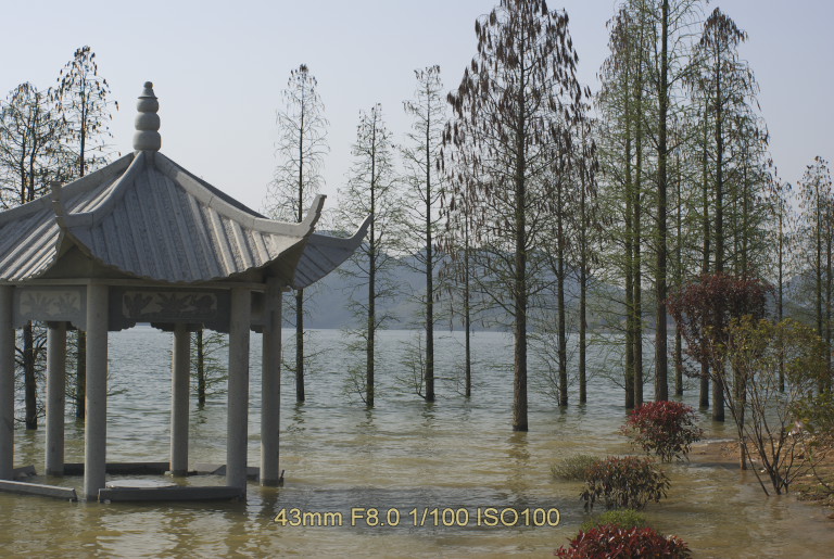 四明(死命)湖,里面有很多死乌龟啊!!估计被淹死的,最近下雨,把亭子都淹了!