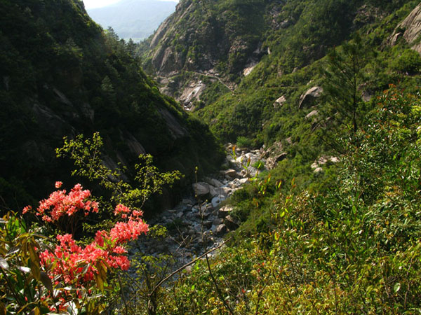 路边、峭壁上山花在四月盛开