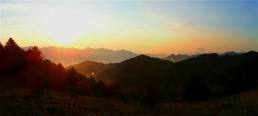 也许是贪婪清新的空气,野外的清晨起得特别早,钻出帐蓬舒展着身体,东方的晨曦慢慢变成朝霞映在天际,红红的太阳从群山中探出头来,大地从沉睡中醒来。匆匆收拾好行装,从此踏上下山的行程,环顾四周,这熟悉而又陌生的草甸高山,数次探访而又不得不离开的营地,何时才能故地重游。