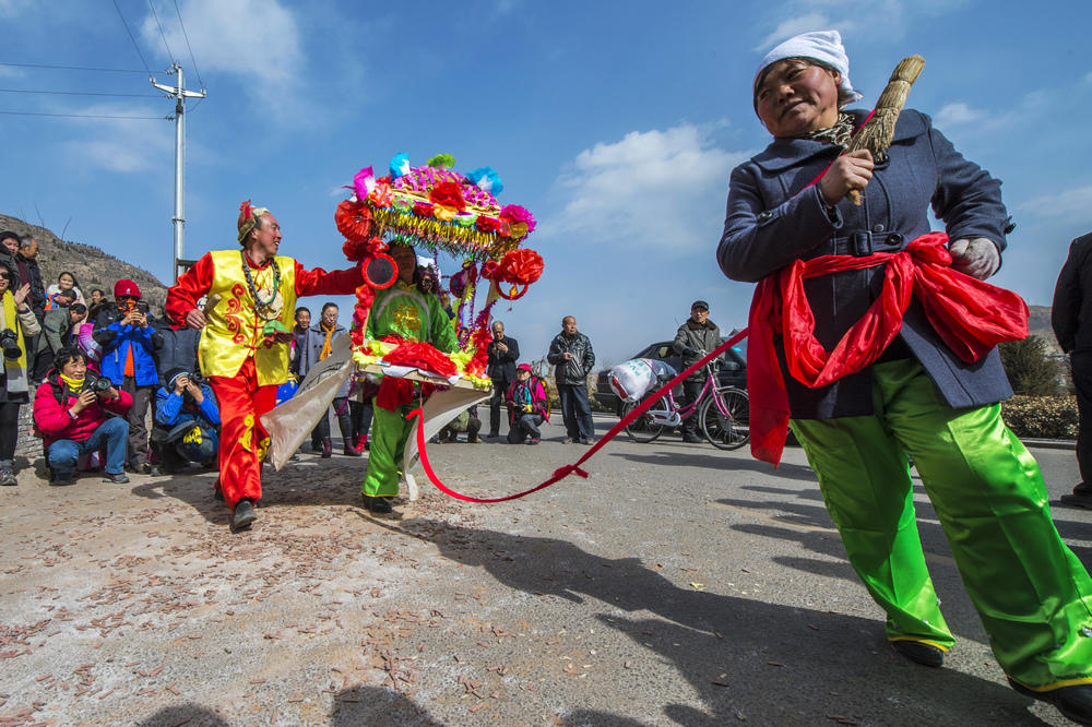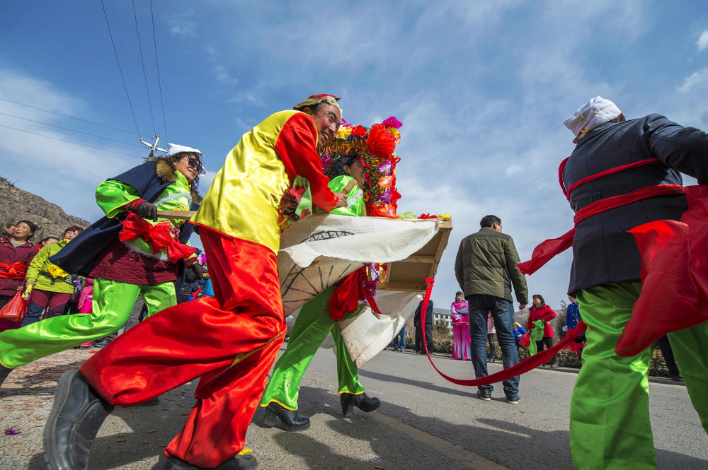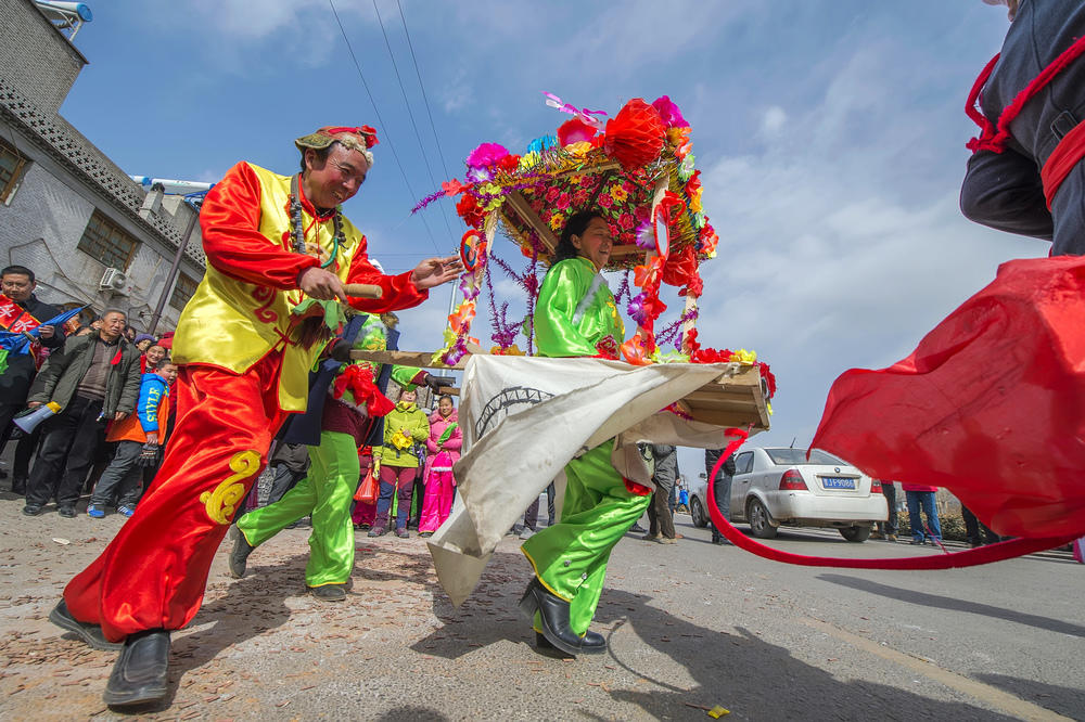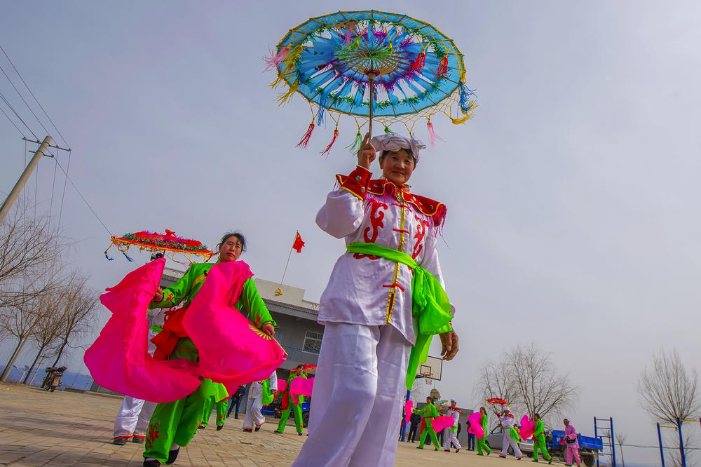 ,秧歌表演者常有数十人,有的多达近百人,在伞头的率领下,踏着铿锵的锣鼓,和着嘹亮的唢呐,