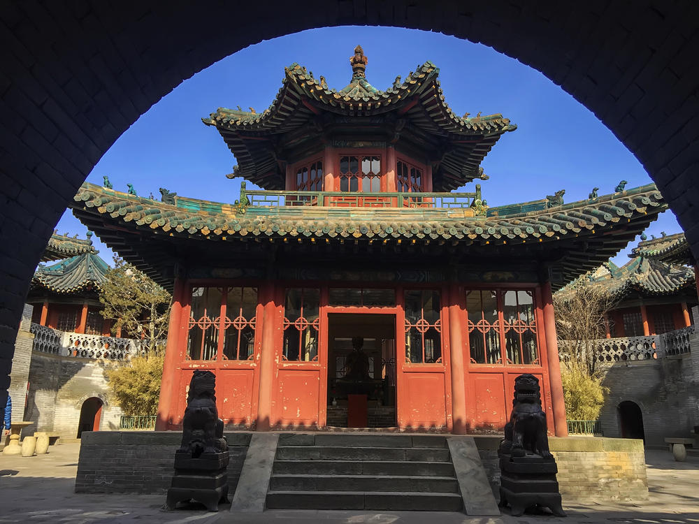 纯阳宫的建筑占地不大,它以巧思入神的布局为世人称道。后面两院为楼阁式建筑,错落有致,曲折回旋,徜徉此间,大有