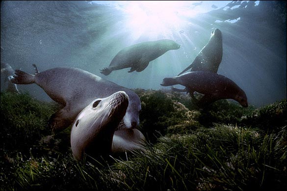 海狮:大卫·杜比勒特在澳大利亚小霍普金斯岛的海草丛中,发现这些海狮正在戏耍玩闹。