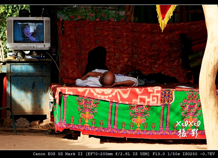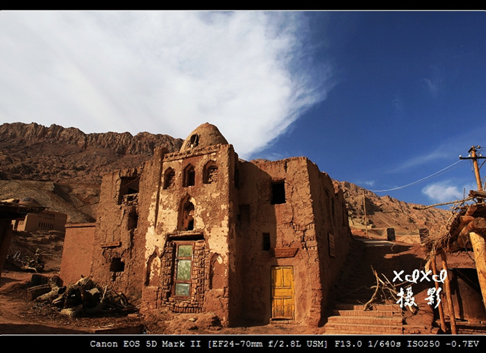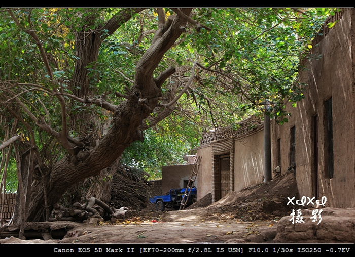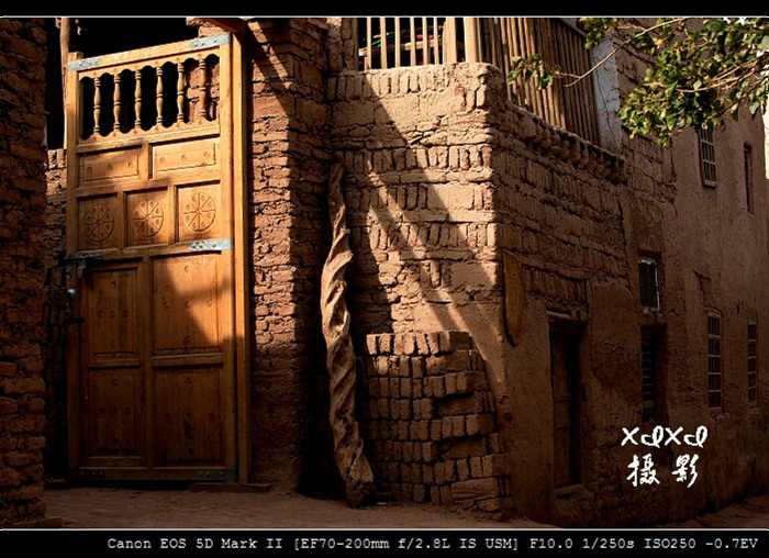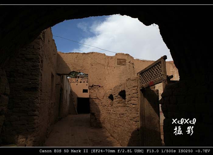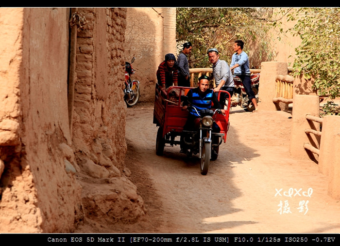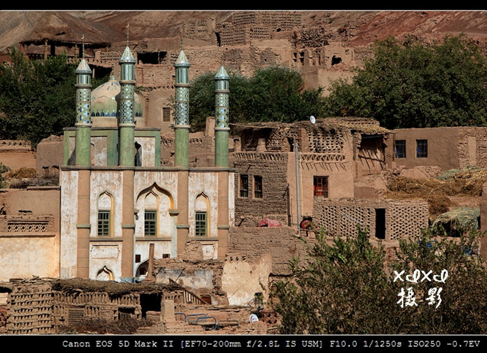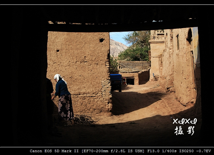 我们后来回到宾馆看到善鄯关于麻扎村的摄影画册,他们更多的和当地人文的结合,使摄影作品更能反映这里鲜活的民俗。我们没有和村民接触,匆匆的走马观花不可能感觉到民族的习俗差异。原先标题为“民俗活化石”感觉离题太远,看着自己拍的图片,感觉一片沧桑的黄色,因此还是把它标题为“中国第一土庄”。