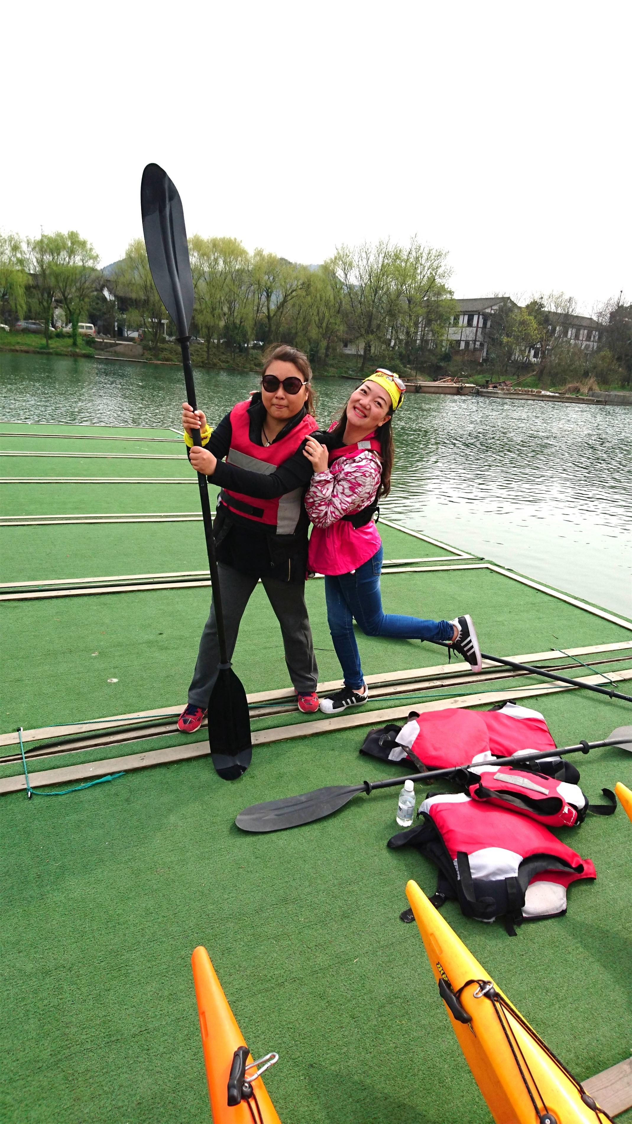 抵达茅家埠后,大家兴冲冲的抬皮划艇(我觉得这算热身)、选救生衣和船桨。