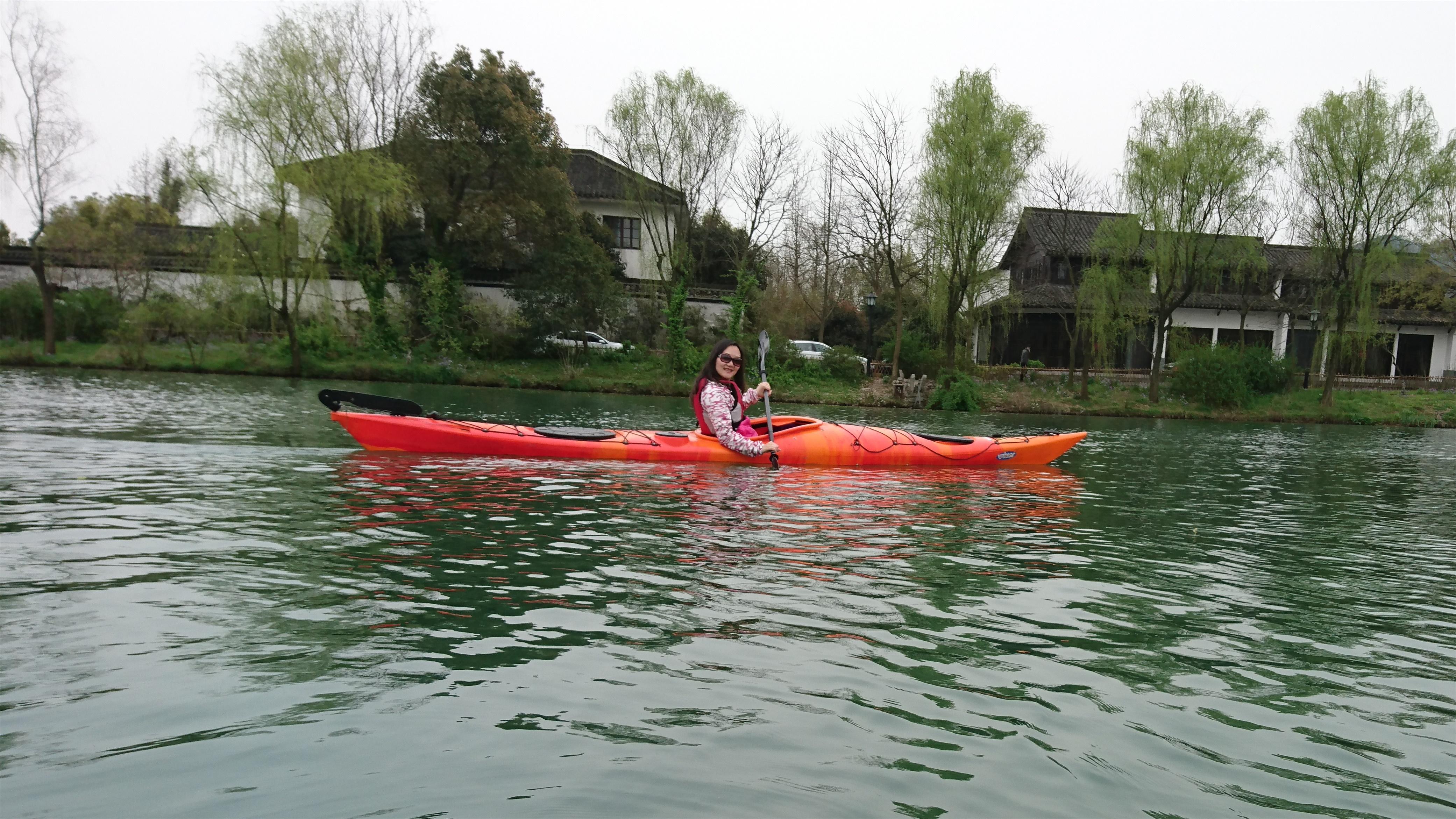 路上准备差不多了,教练开始教大家如何上艇,皮划艇完全不像想象中那么“瘦弱”,挺稳的