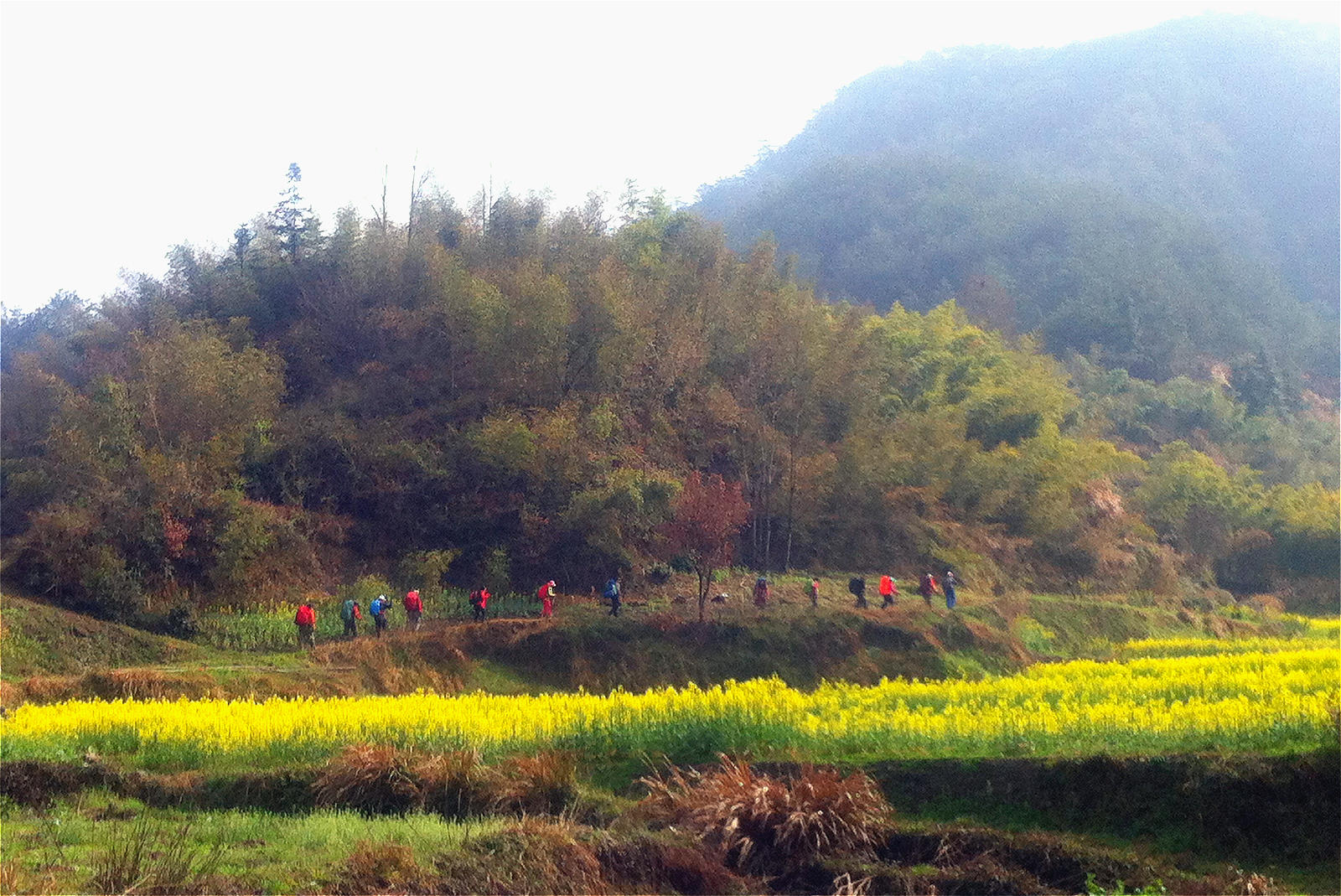 武汉到绩溪有600公里,我们18日晚驱车经过9小时于19日早抵达绩溪龙川,下车映入眼睑就是徽派风格的农舍和遍野的油菜花,还有绩溪标志性的建筑-小木桥。湿润的空气中散发着油菜花香。