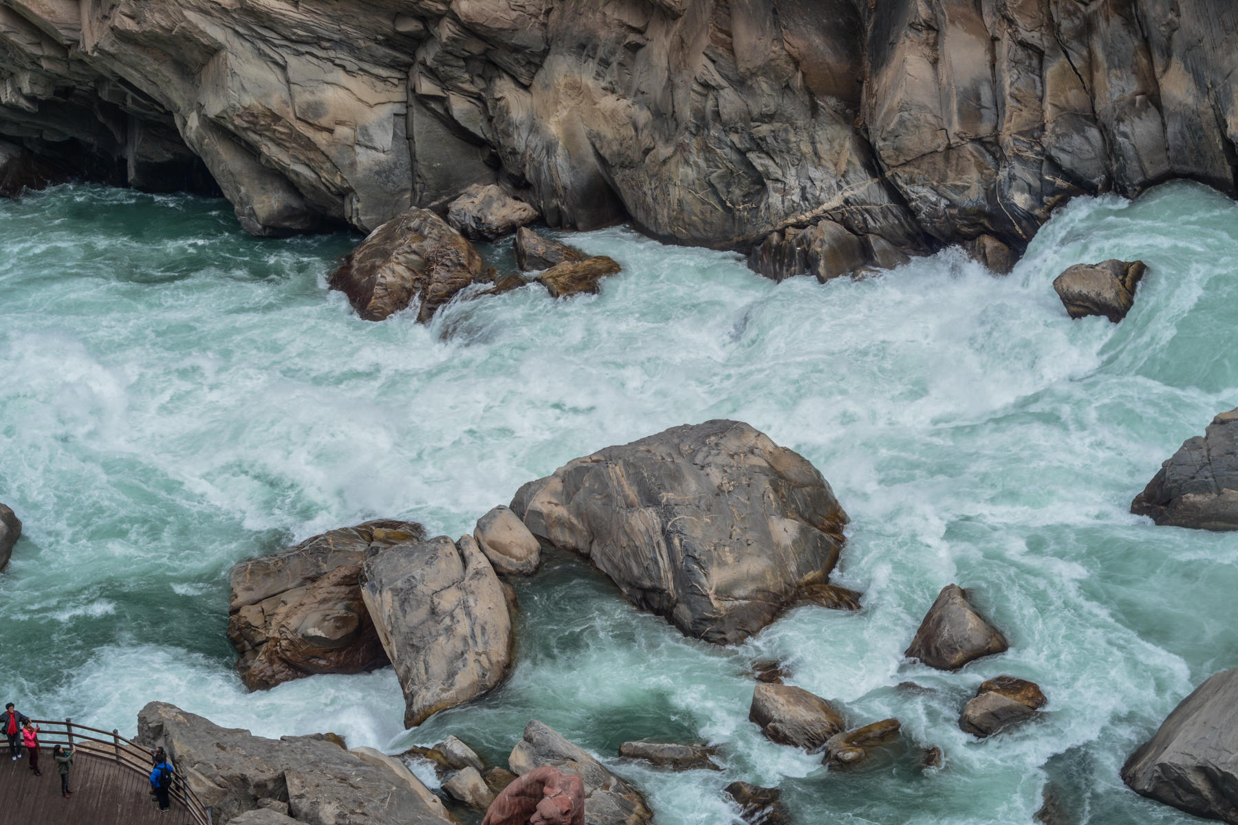 虎跳峡没有了往日的万马奔腾、山呼海啸,但是这样的碧绿如洗和绵柔蜿蜒,也是让人觉得秀色可餐的啊。