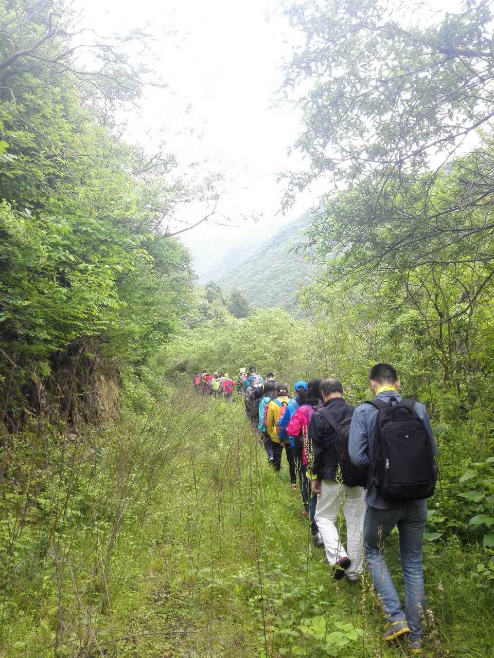 吃过午餐后继续登山了,下午的行程就变得艰难了,雨也下大了,路更滑了,原先的路不能走了,只能重新开辟新的路了,探路小分队也就此产生了。虽说路难走,有时候还得手脚并用才能前进,稍不注意还会有滑到的危险,但是大家手拉手,共同度过一个又一个难关,是在让人感动......
