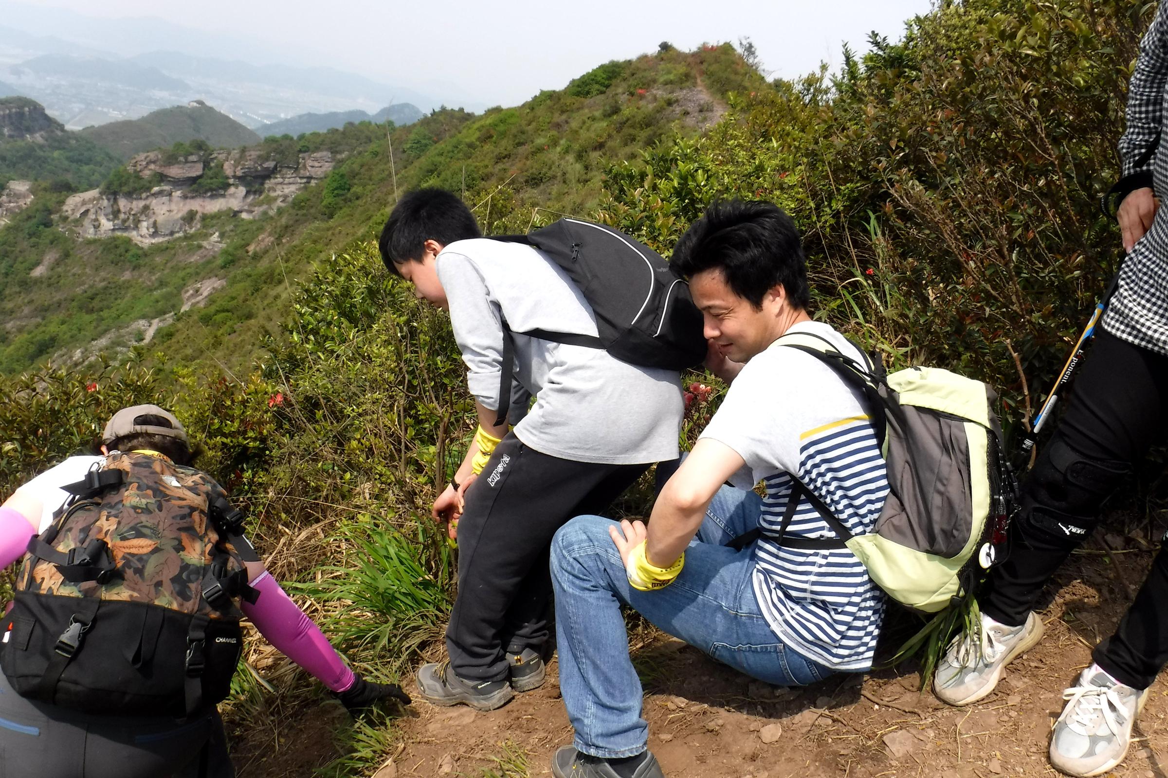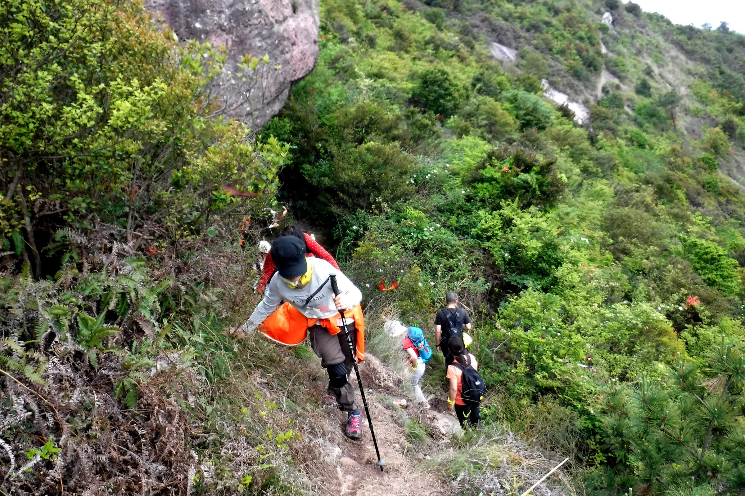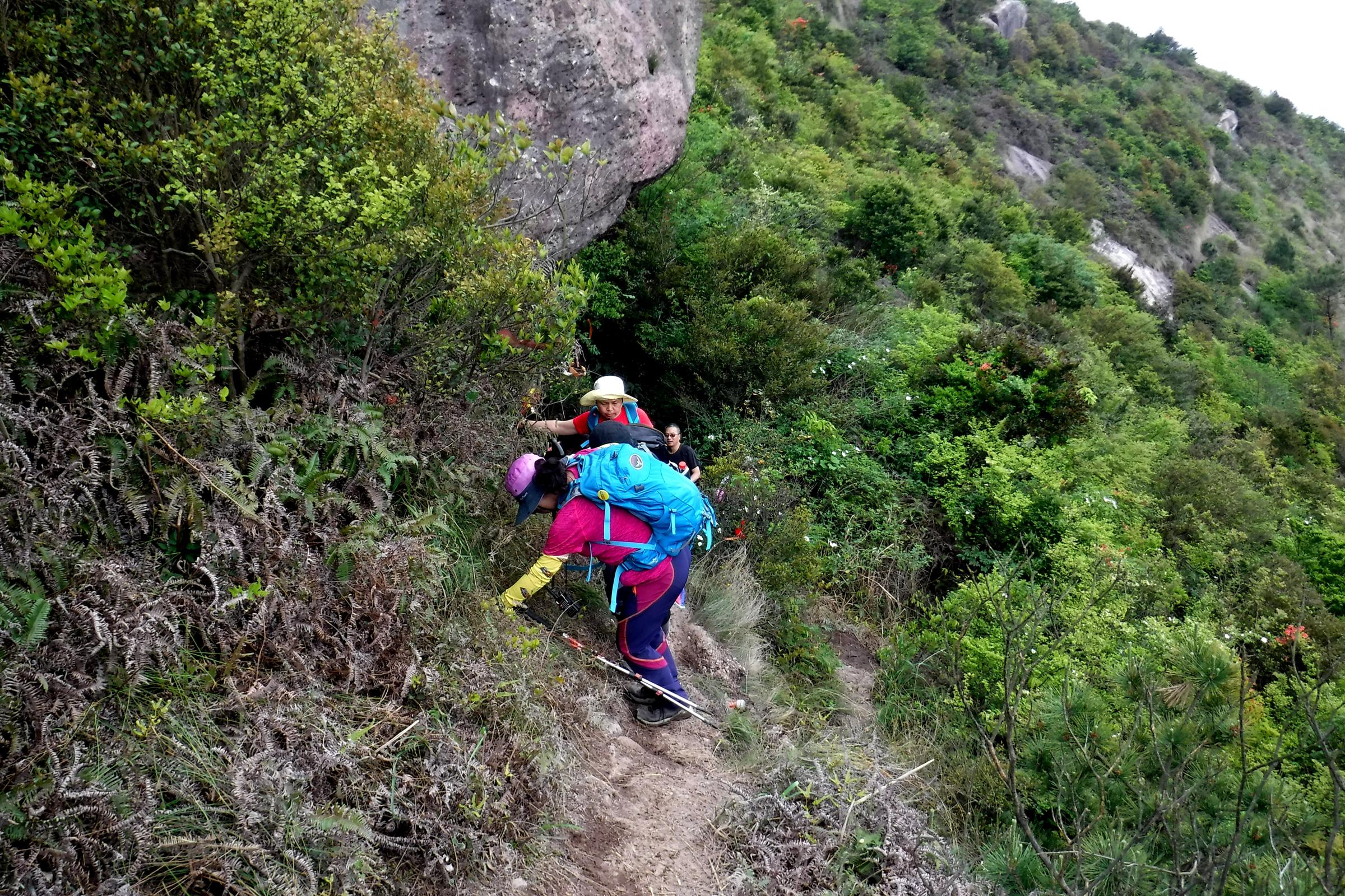 最后一段下山陡坡,约有6、70度,大家互相帮助、鼓励,艰难下山。在此要特别感谢lisir,鼓励、帮助一位恐高的美女坚持走完全程。