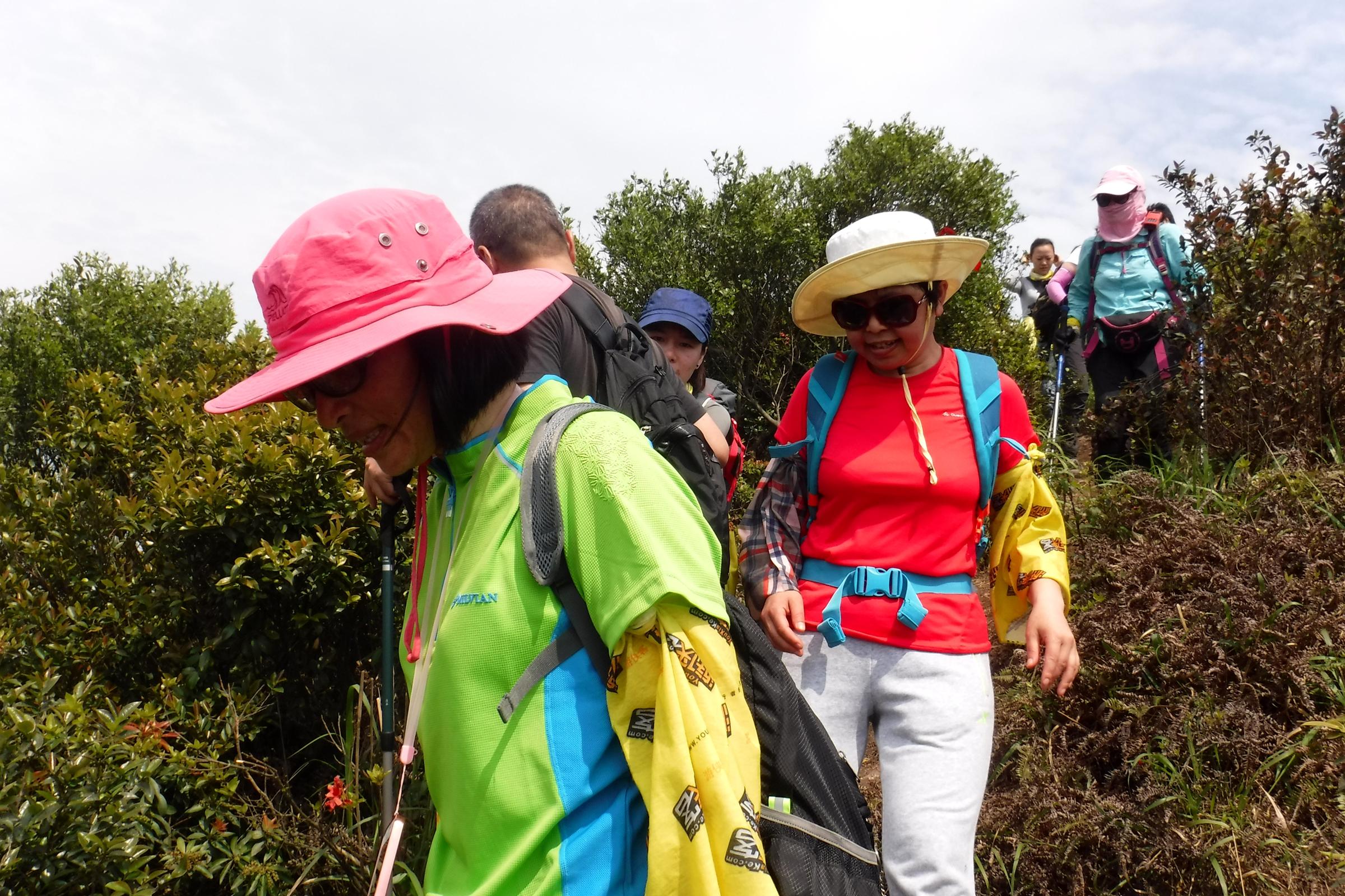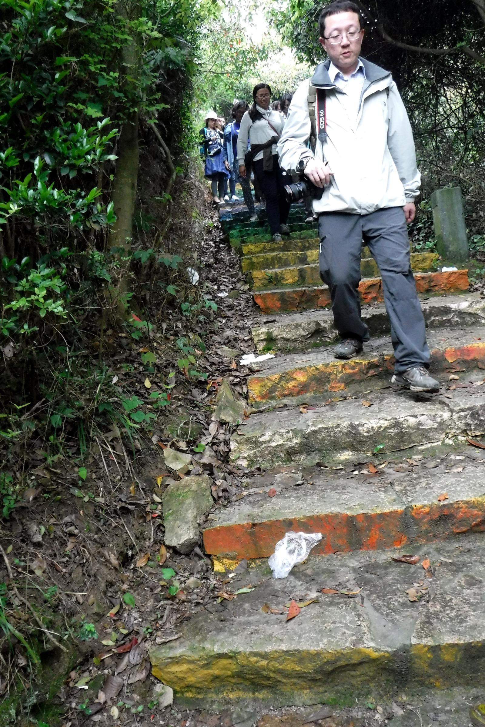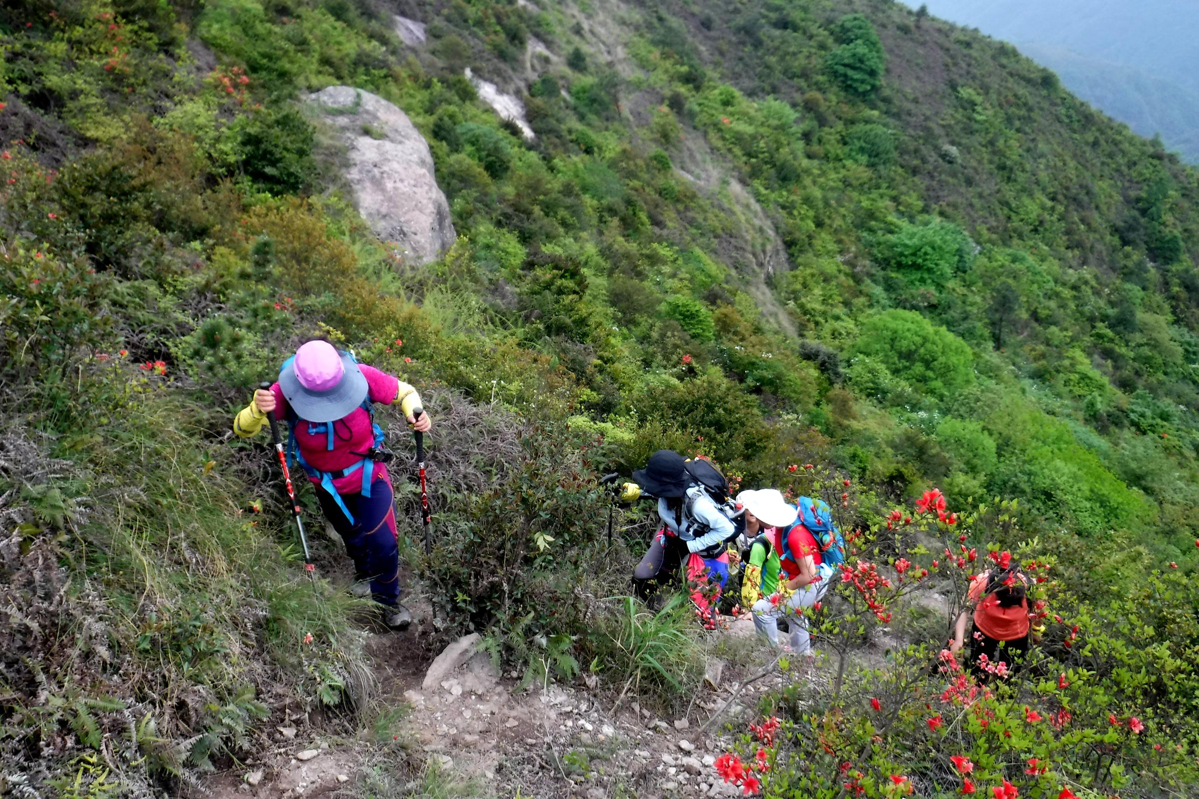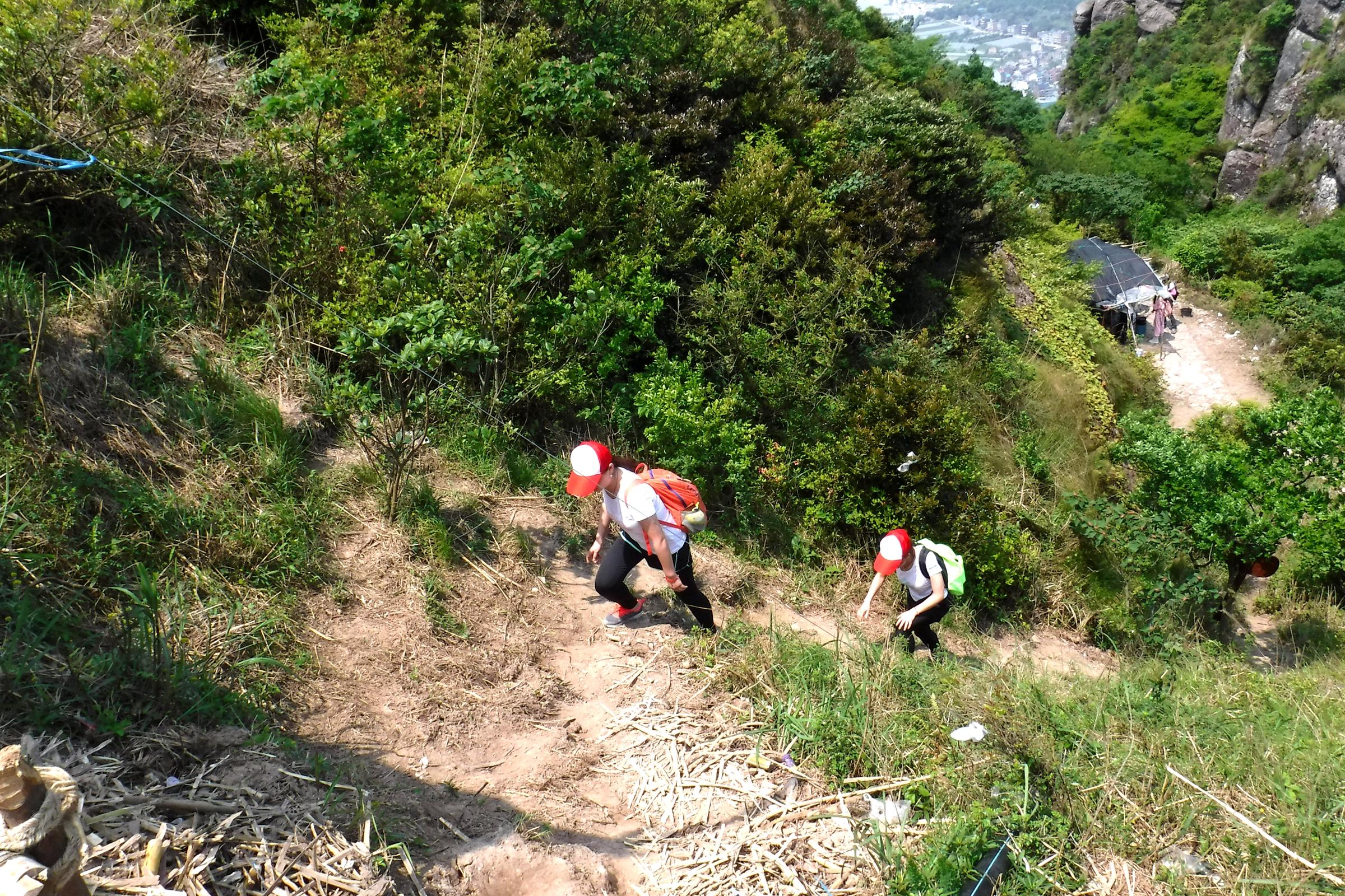 最后一段下山陡坡,约有6、70度,大家互相帮助、鼓励,艰难下山。在此要特别感谢lisir,鼓励、帮助一位恐高的美女坚持走完全程。