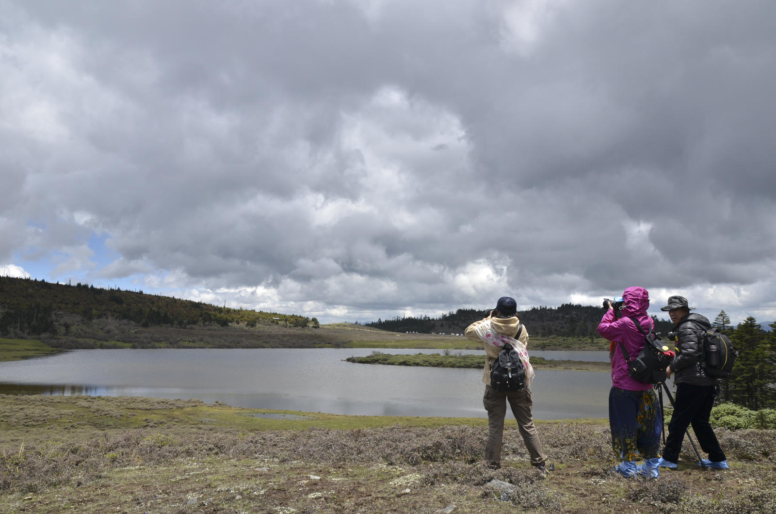 丽江的雨水,喜欢早餐来临,驱车攀升,来到丽江的后花园【花海子】,一个高山湖泊呈现,牛、马、羊... ... 野花牧场