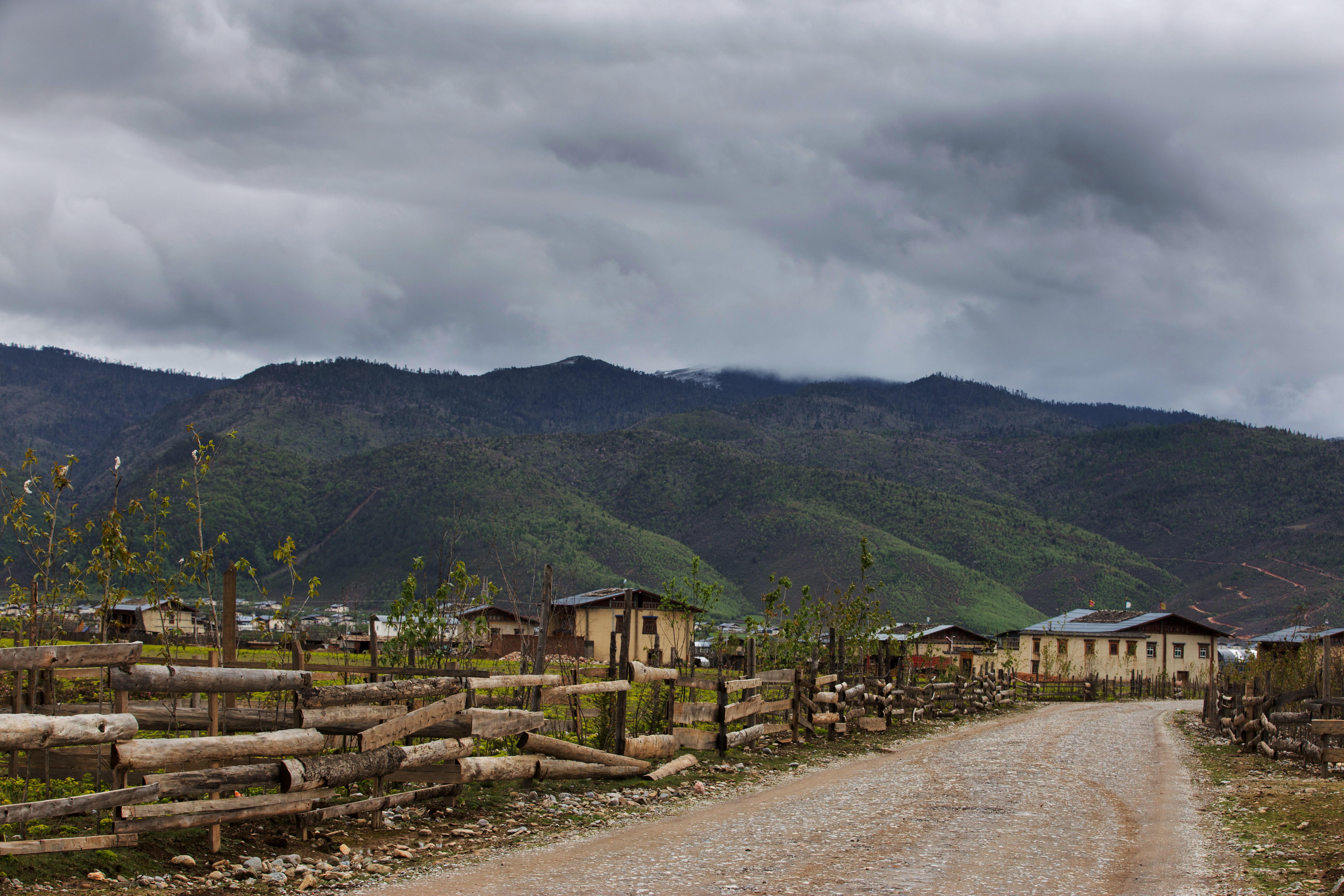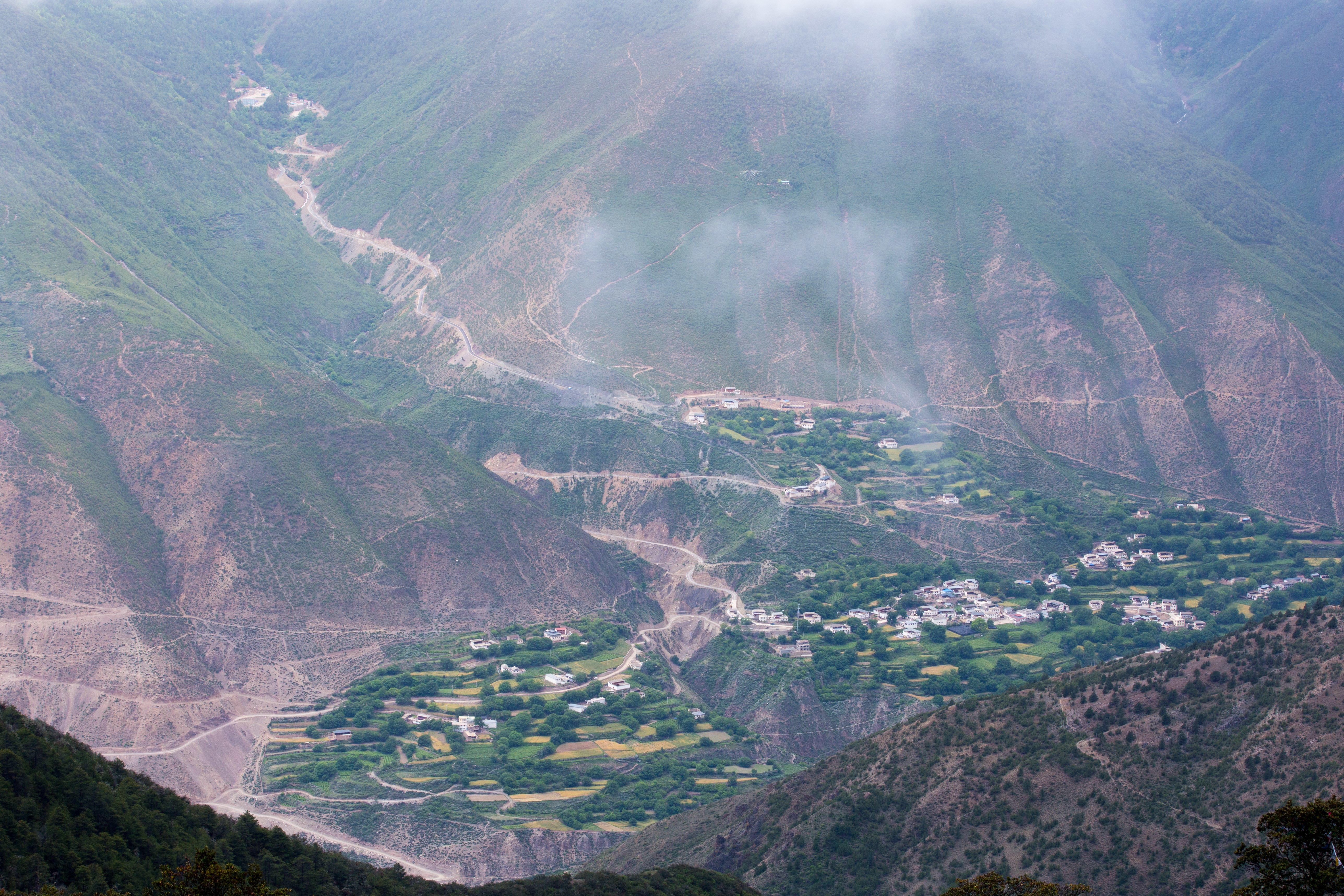 临近香格里拉的时候,眼前逐渐变得明媚、艳丽,即便是在阴雨天。一簇簇杜鹃花海犹如上帝在着色时打翻在人间的调色板,刚调好的悦目的颜料撒了一地,娇嫩欲滴的色彩复苏了整个世界。一片由花毯铺成的净土,直到视线的尽头,远处的藏民的屋子错落有致的散落在山脚下,背后就是皑皑的雪山。