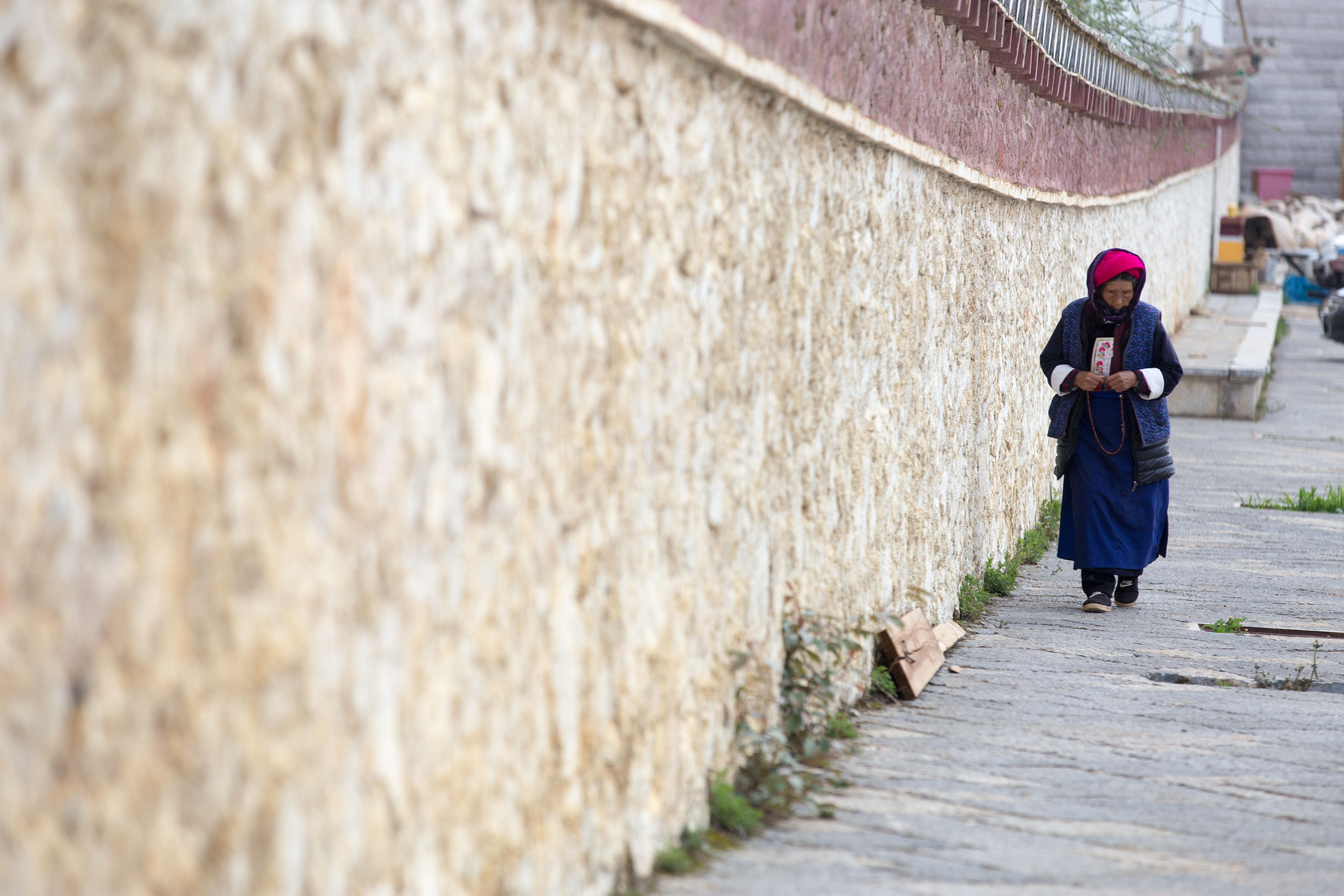 去松赞林寺的这天天还不亮就出发了,为了一睹藏区格鲁派这个盛大寺庙的第一缕曙光。临近拉姆央措湿地的时候天已经很亮了,头顶的乌云密密麻麻,眼前的佛国圣殿更加的巍峨庄严。虔诚的藏民已经陆续的出现在寺庙的周围转经祈福,大都是些上了年纪的老人,有些已是衣衫褴褛、步履蹒跚,然而依然数十年如一日的守护着心中的祈愿。