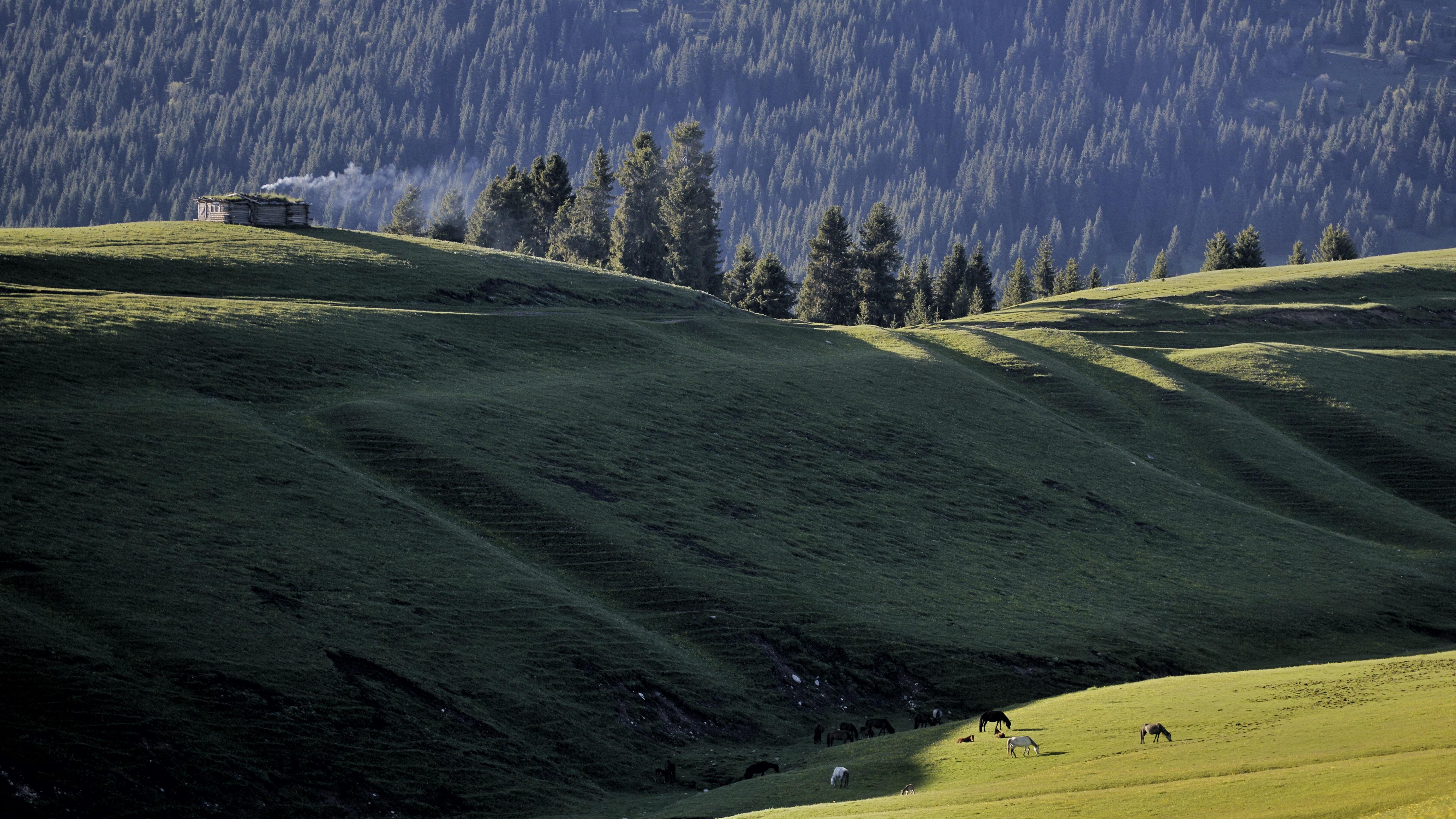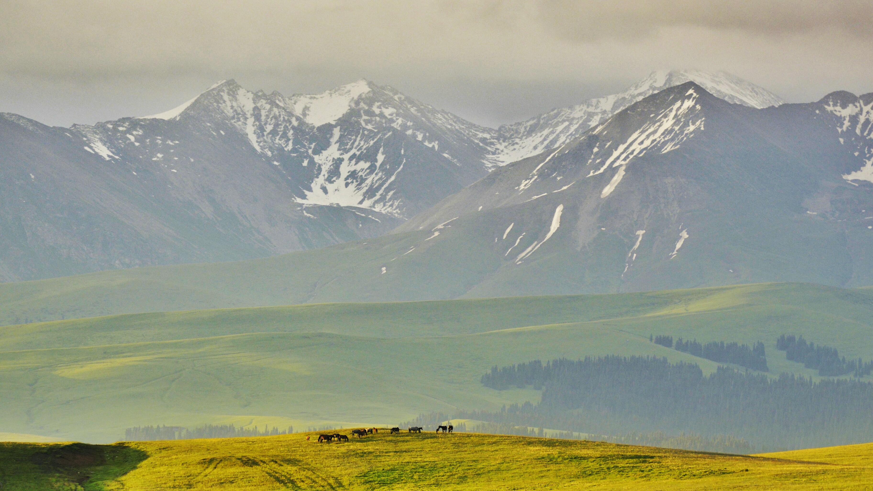 天山是世界七大山系之一,位于地球上最大的一块陆地欧亚大陆腹地,天山东西横跨中国、
