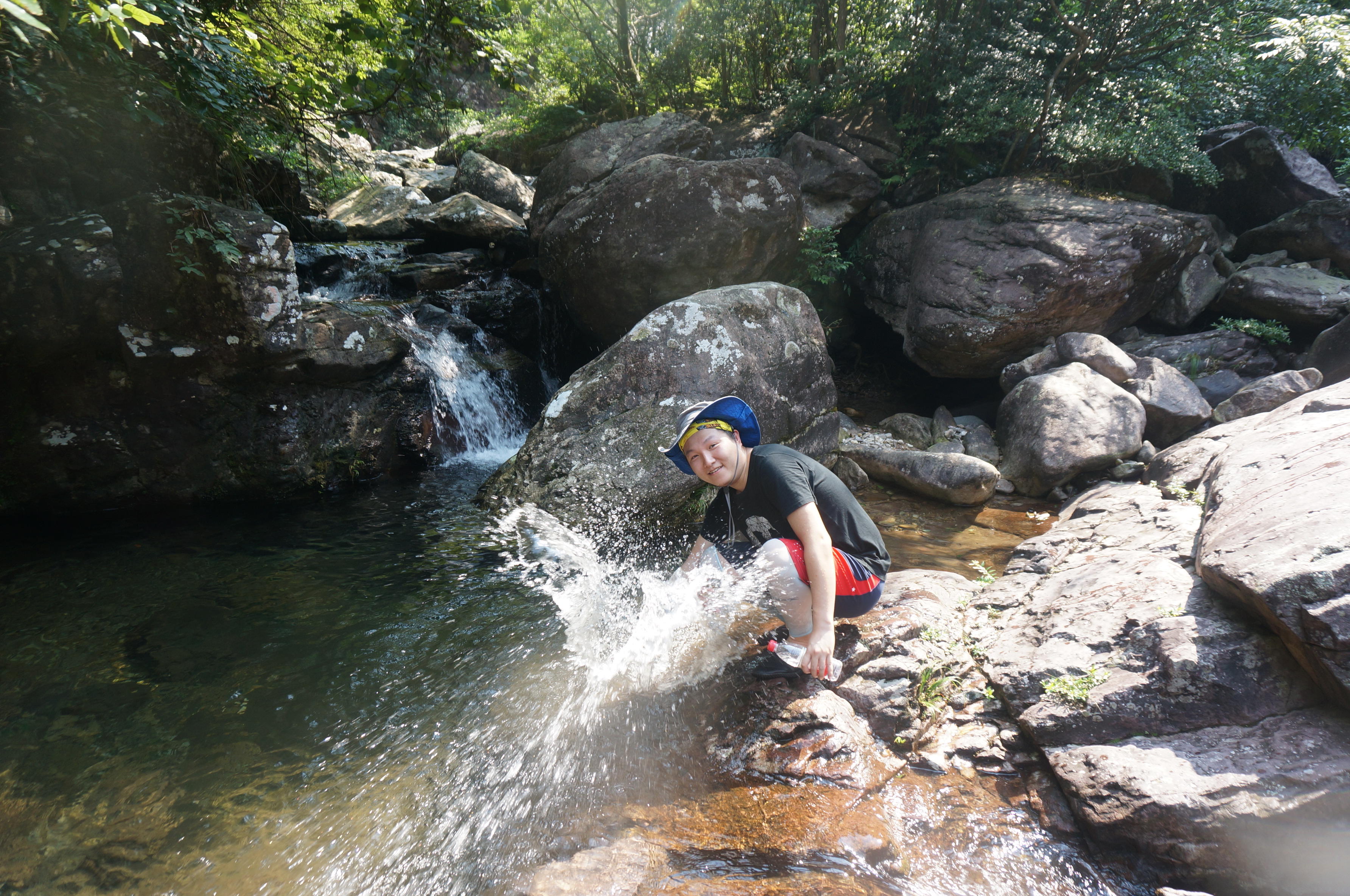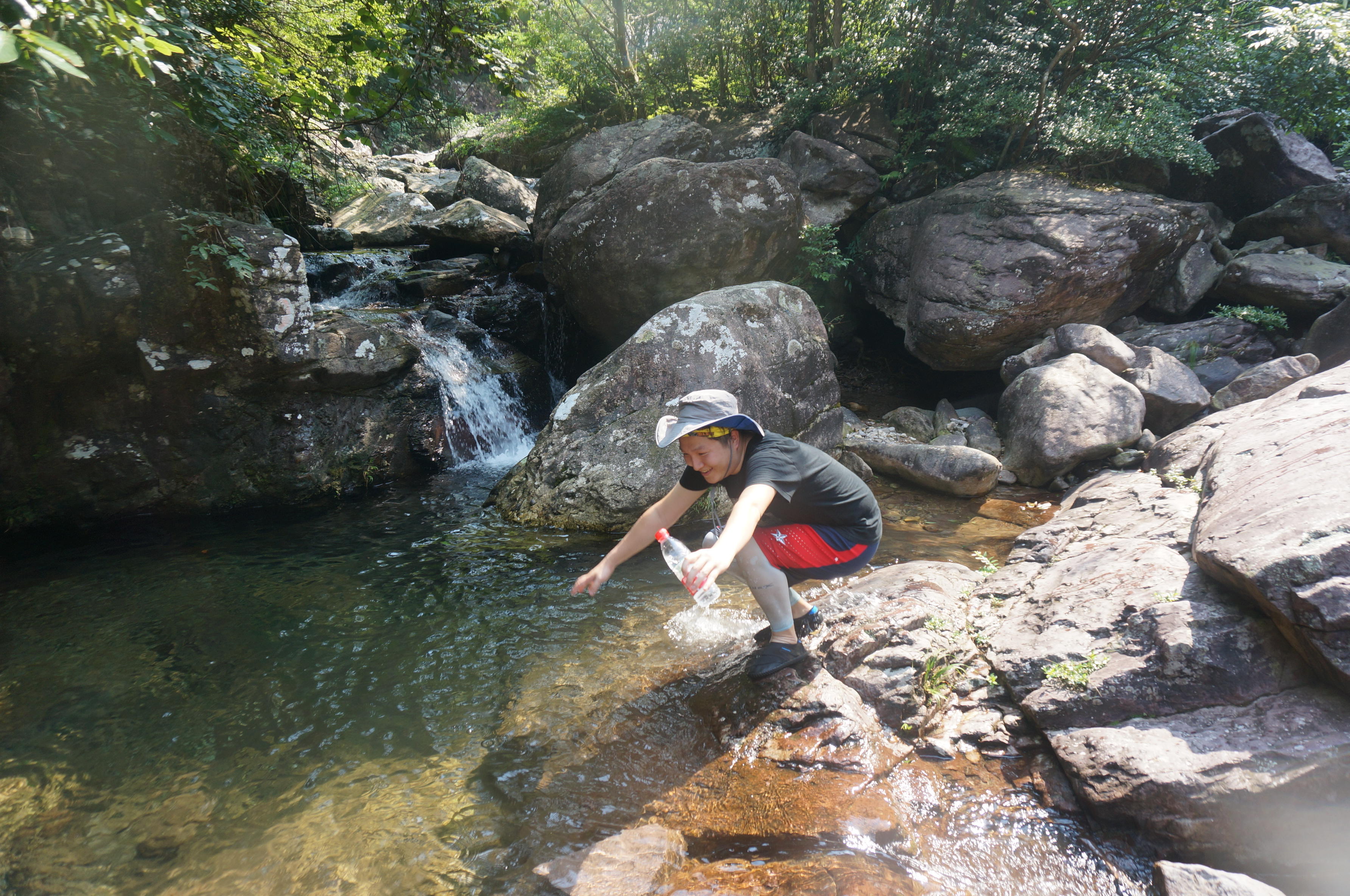 龙宫溯溪线是初级路线,有溯溪有徒步,烈日当头,好在有清凉的溪水适时的降降温。
