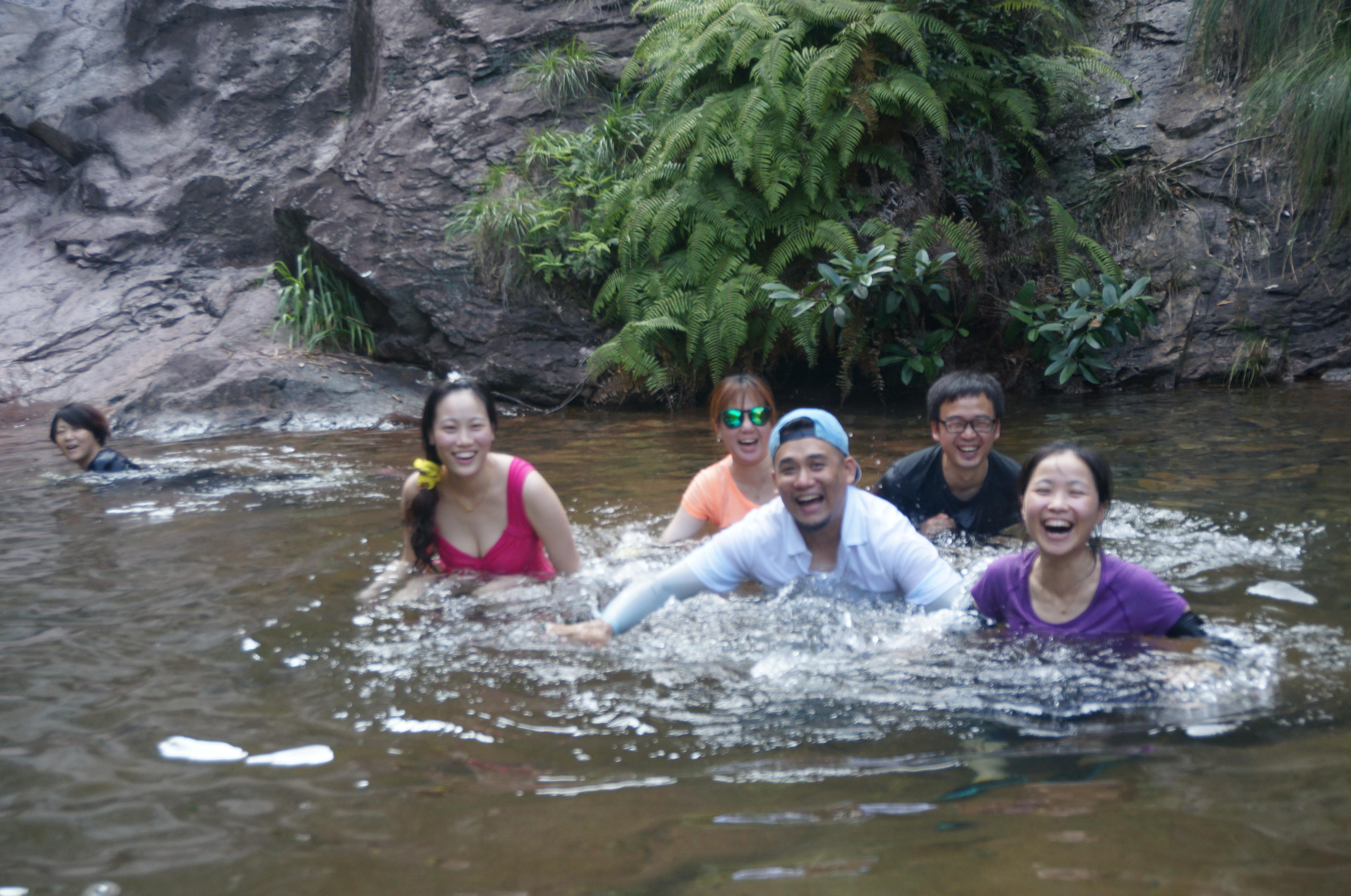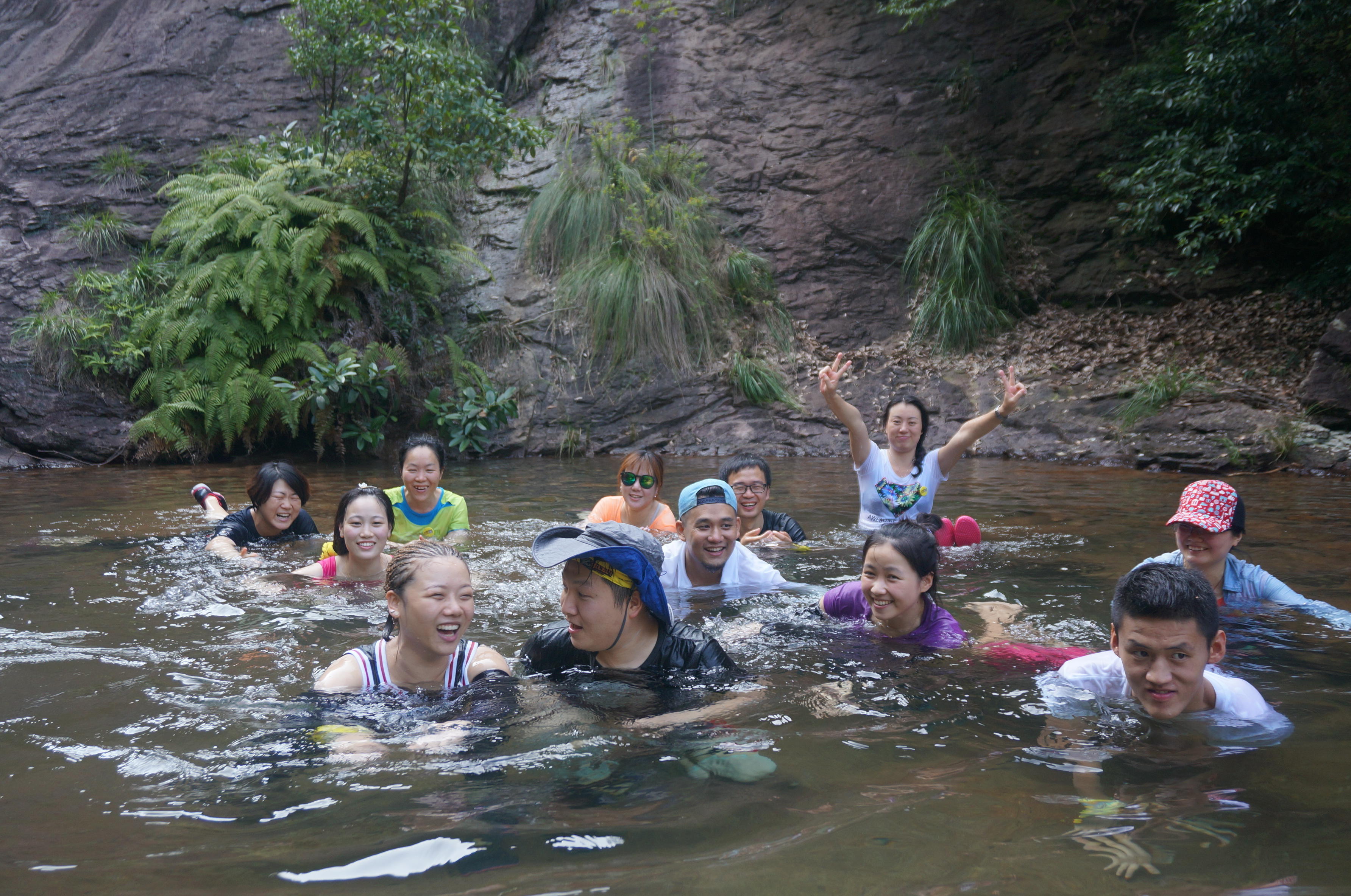 我想大家都嫌弃跟下饺子似的满是消毒水的游泳池,还有水质超烂还人山人海的水上乐园,于是在领队:委员长&猪饱饱带着34名可爱的队员冒着酷暑,溯溪而上,寻觅宁海龙宫村大山里天然的水潭瀑布,好好清凉一把。