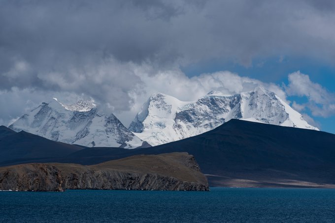 7538米库拉岗日雪山(山南地区第一高峰)守护着普莫雍措。