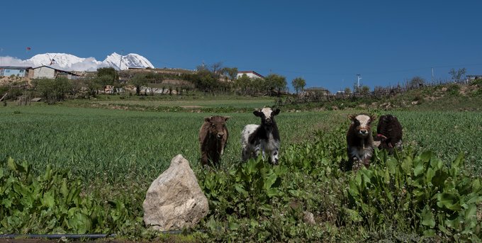 希夏邦马峰(唯一一座全部在中国境内的8000米级别的雪山)山下的牛羊
