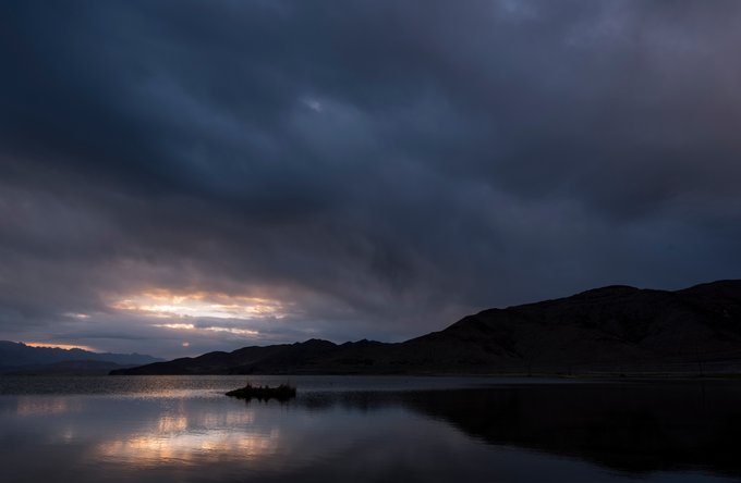 间隙光刚好照亮远处的草原,我激动的跑了几百米来到湖边,因为班公措施个候鸟湖,岸边布满了鸟粪。
