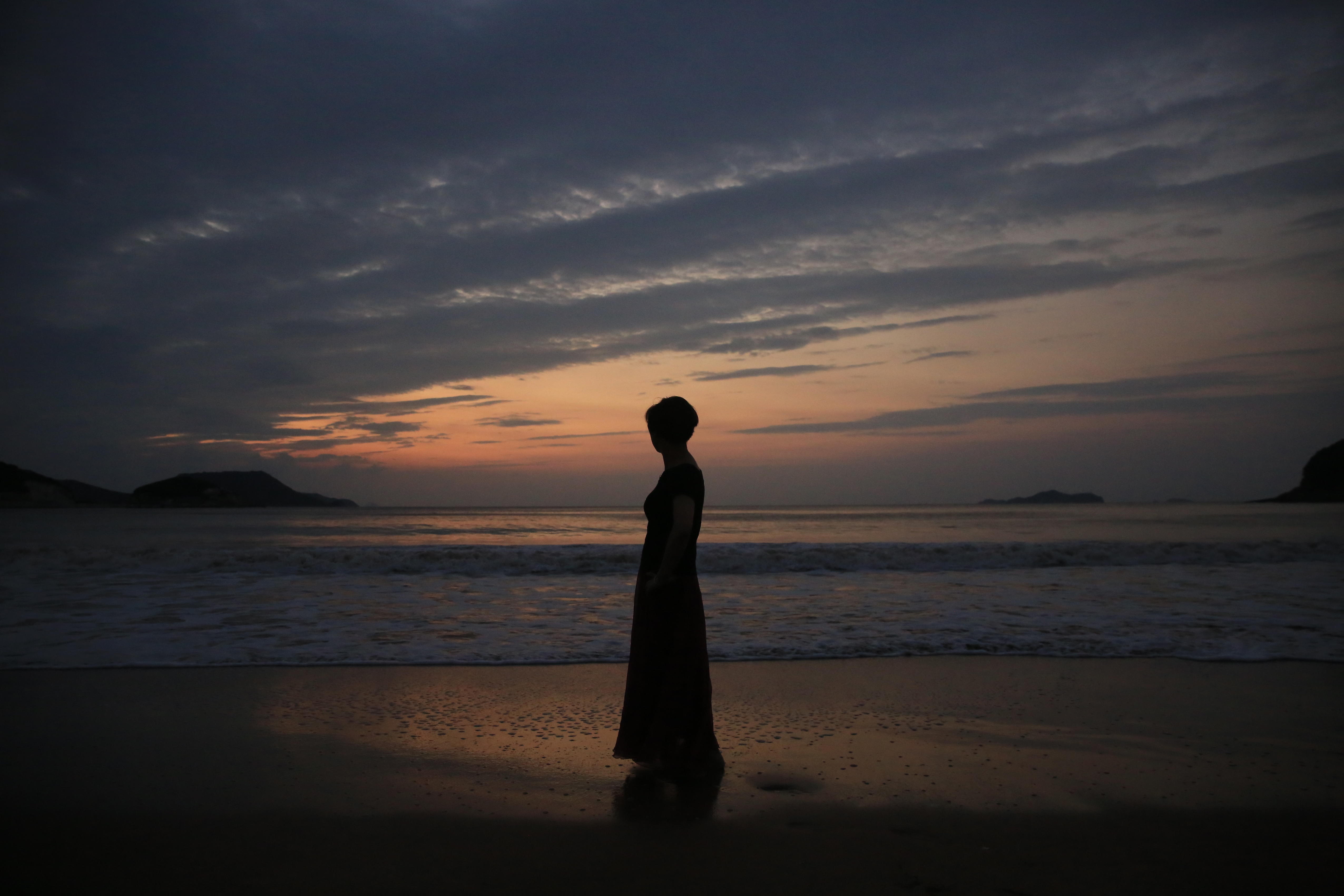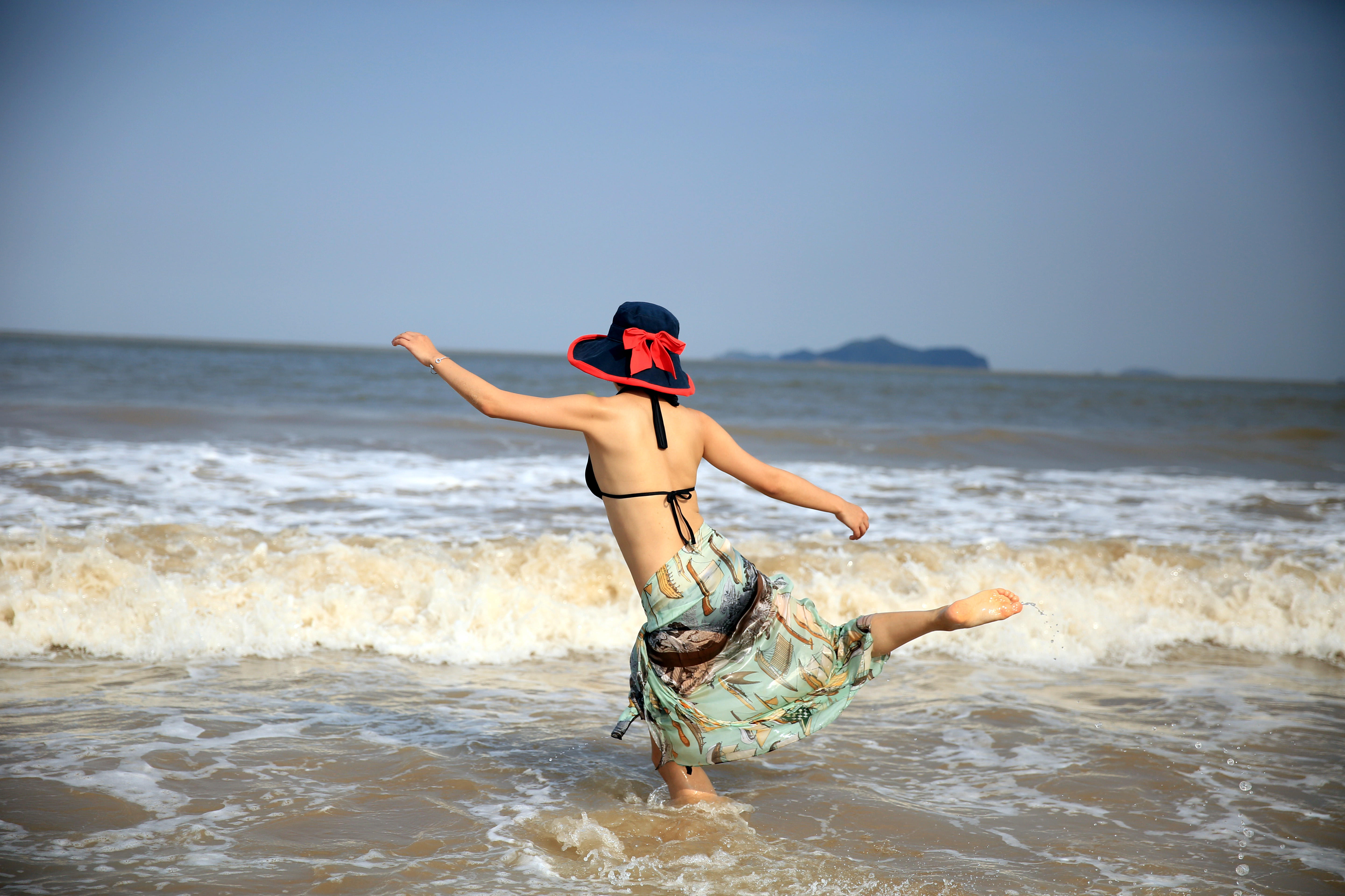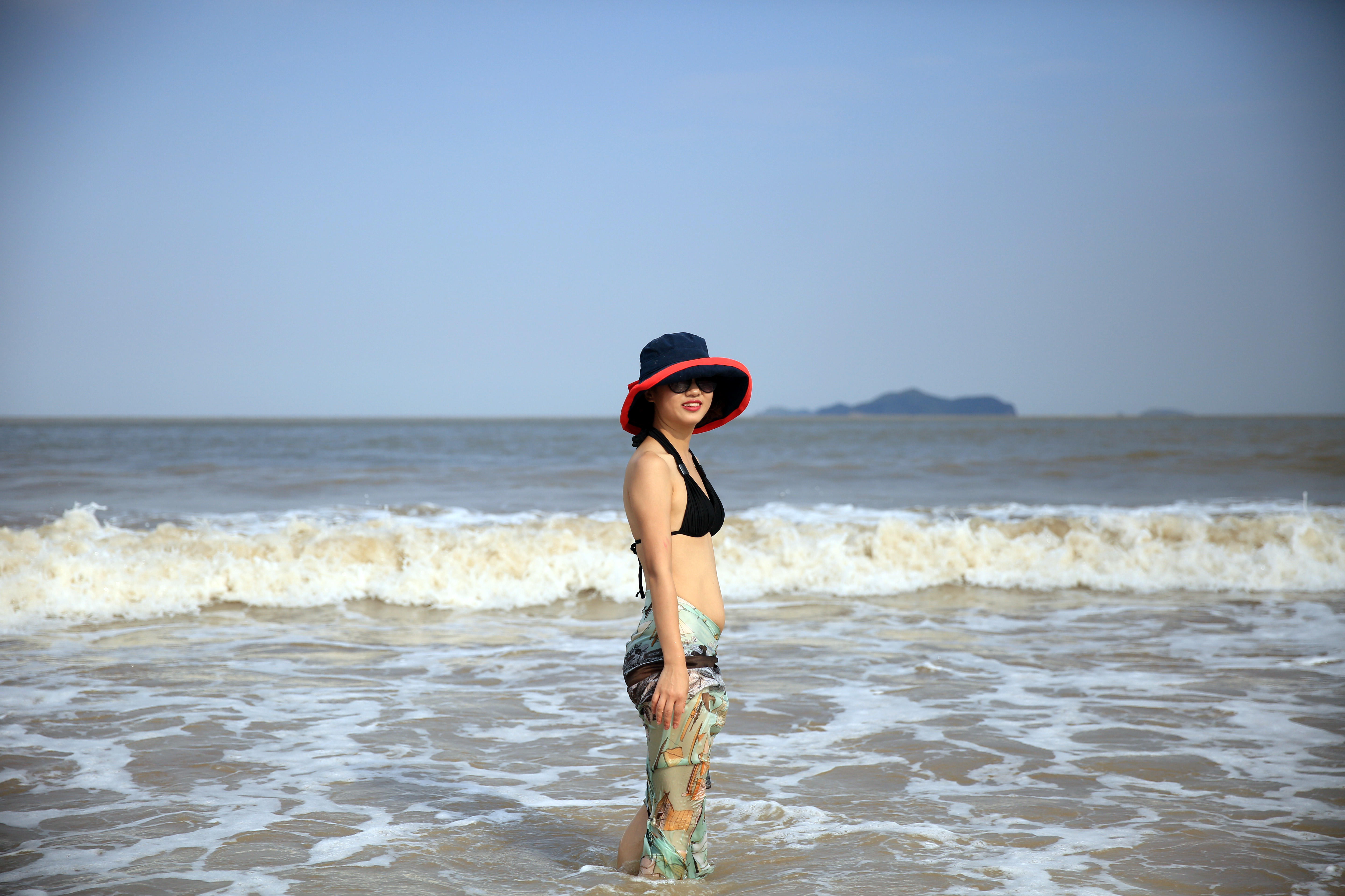 一个浪打来,海水冲到我的脚上,凉爽、舒适。