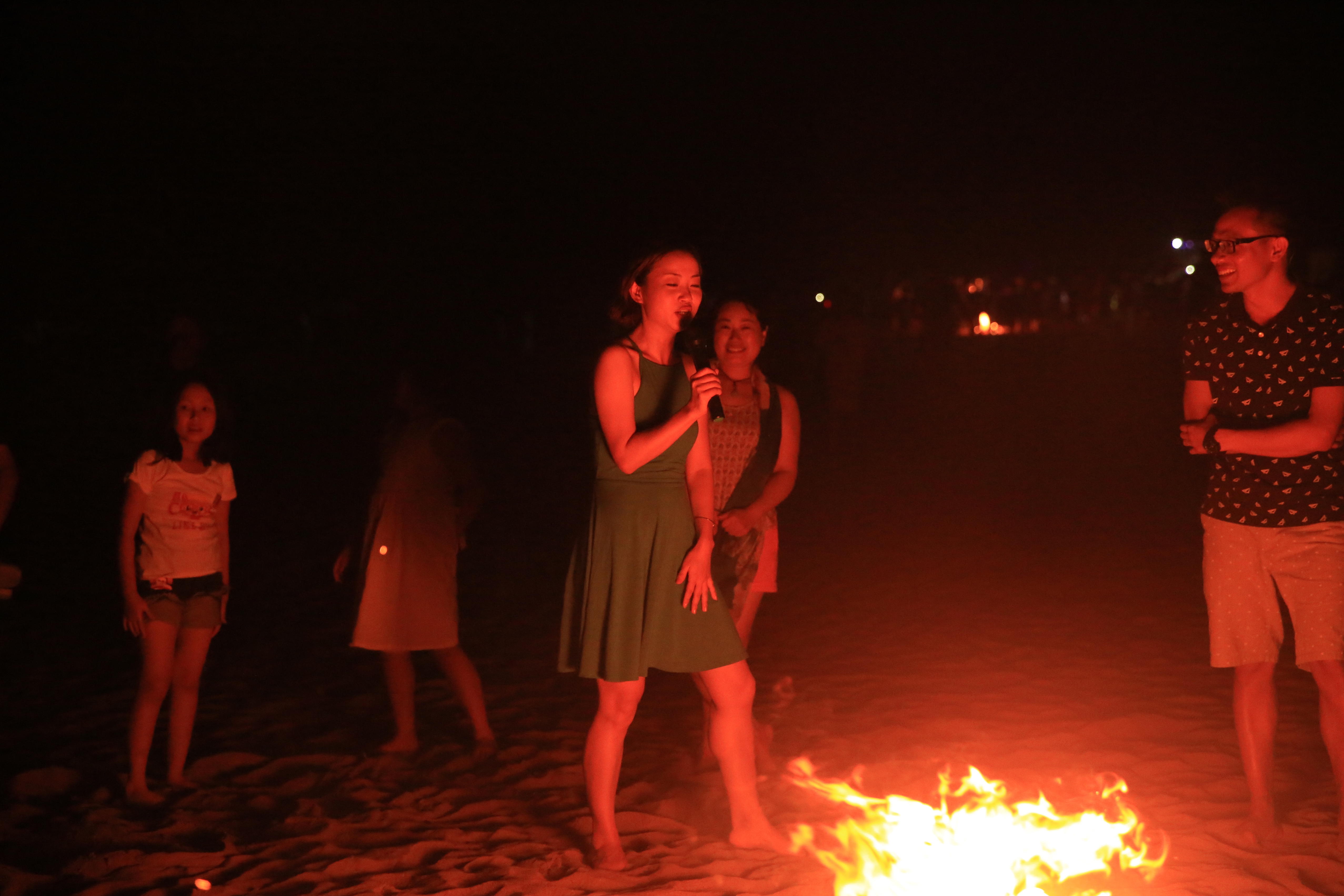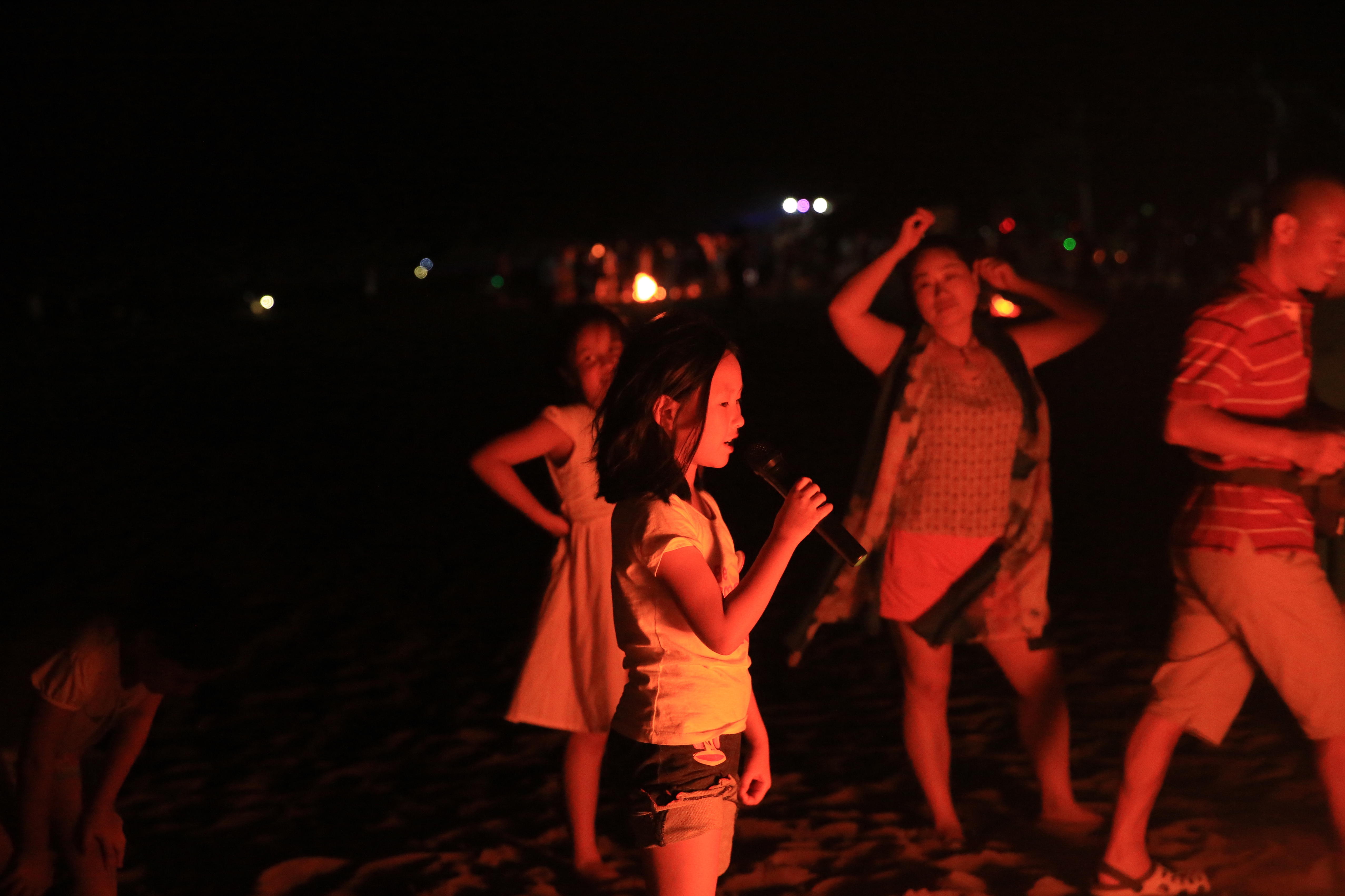 沙滩上依稀撒着数点模糊的人影,有的相互追逐,有的窃窃私语,有的躺在沙滩上,都在享受这美好的时光。