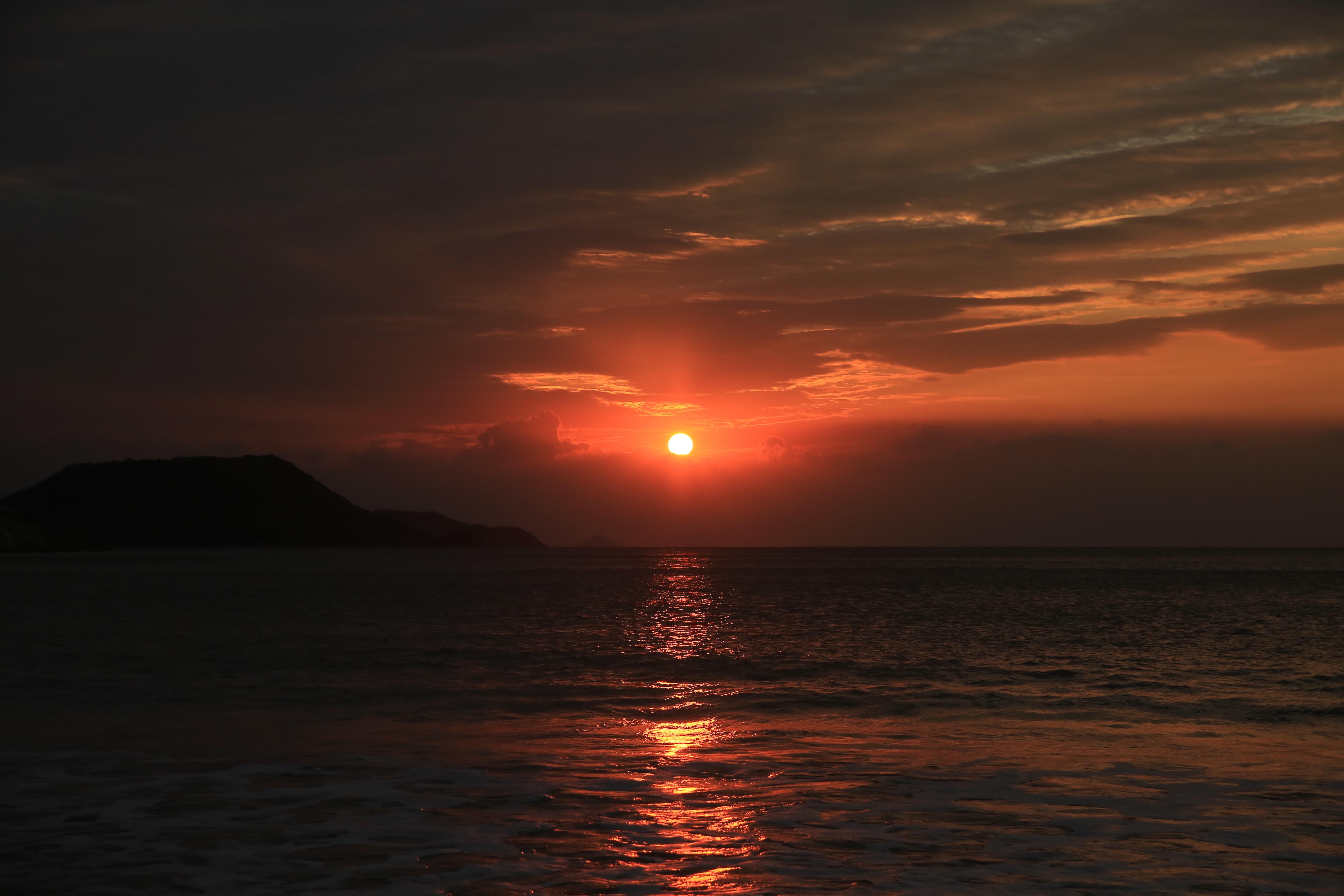 到了最后,终于冲破了云霞,完全跳出了海面,颜色红得非常可爱。