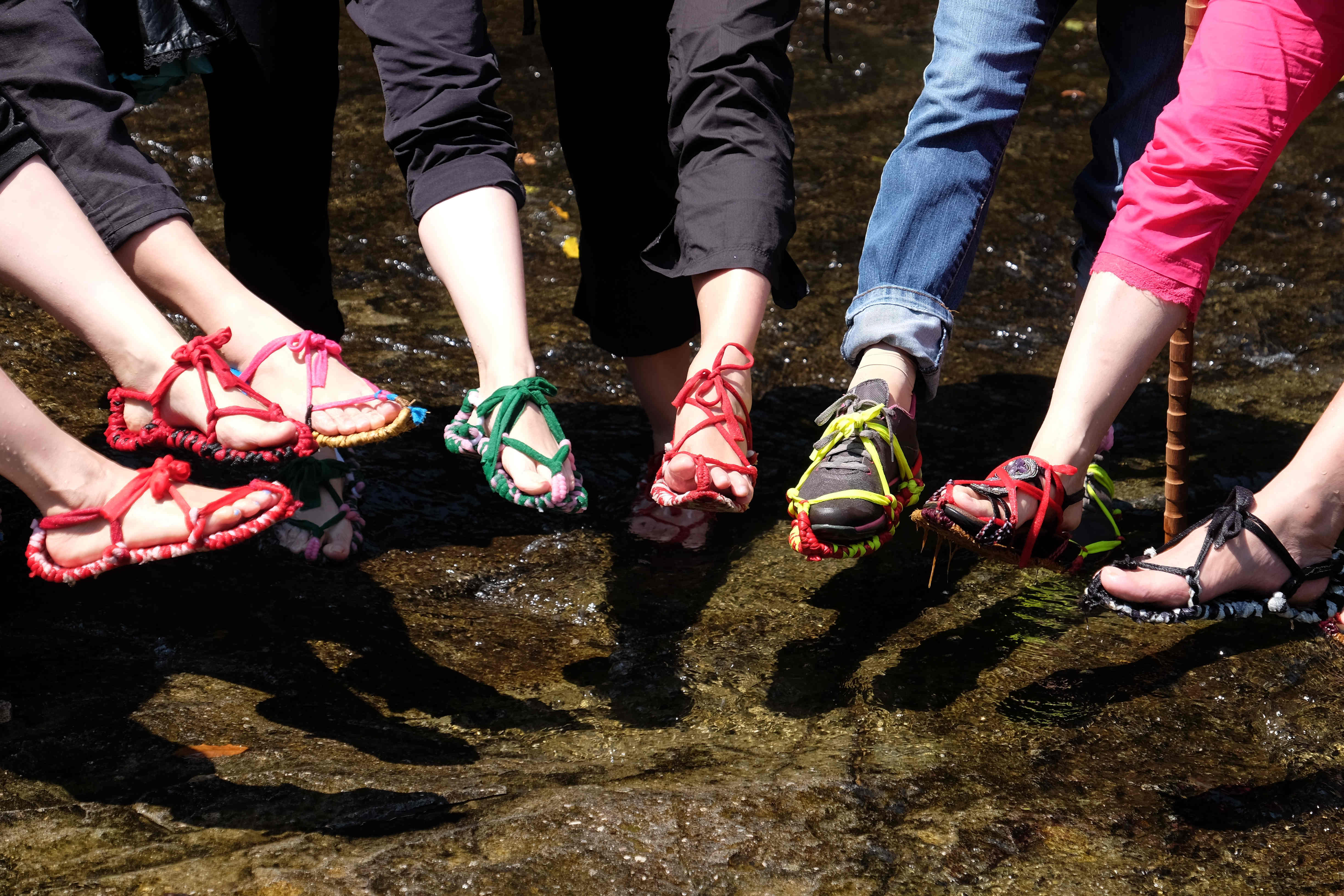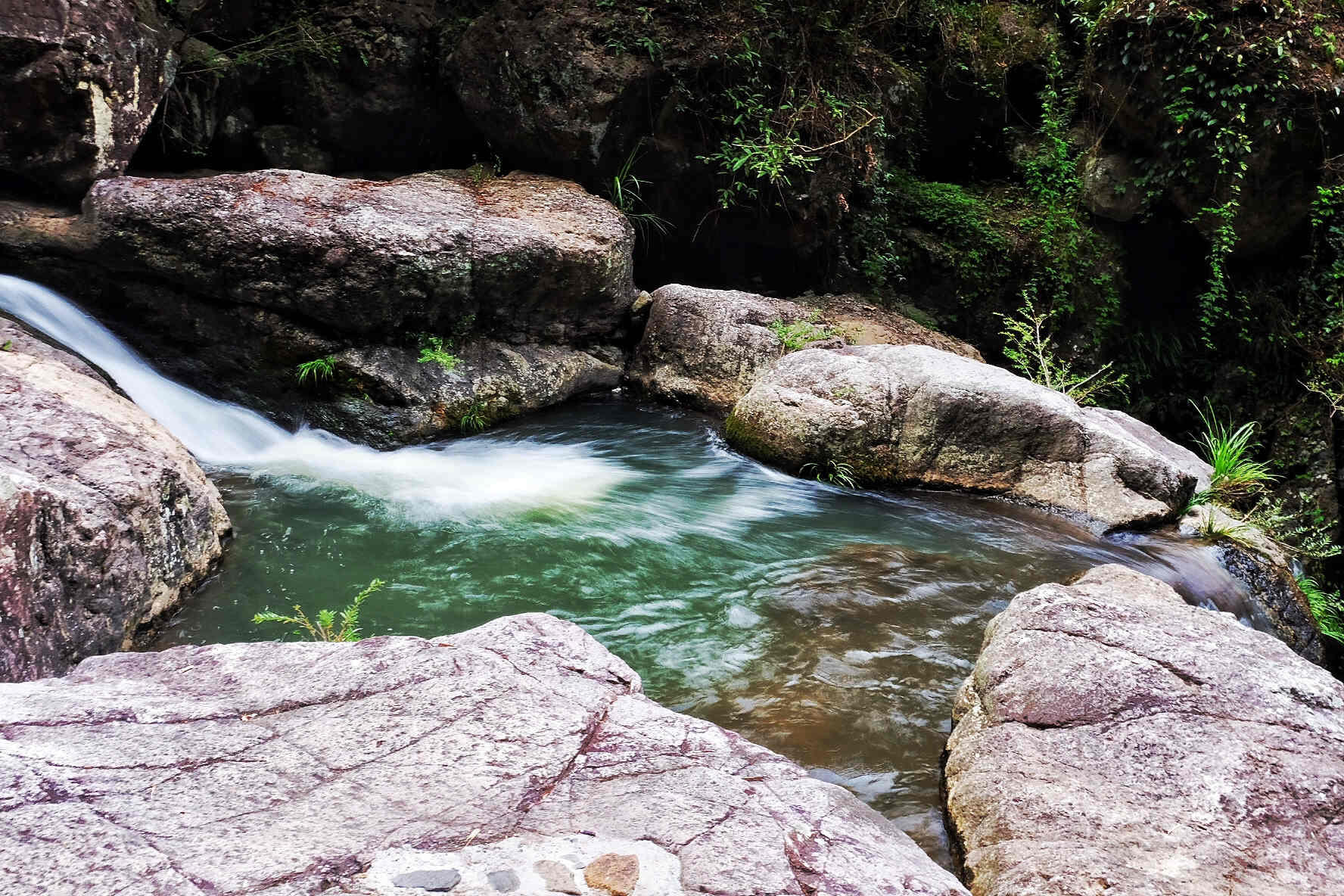 3.【千米平板长溪】整条溪底平整如削,无沙石积岩,流水淙淙,清澈见底,买上一双花花的彩编鞋,沿溪而上,小鱼在趾间穿梭,简直是天然足浴,通行的还有游侠宝贝团,带上水枪,一路激情水战,打闹嬉戏,还有水上长廊,水上秋千,适意